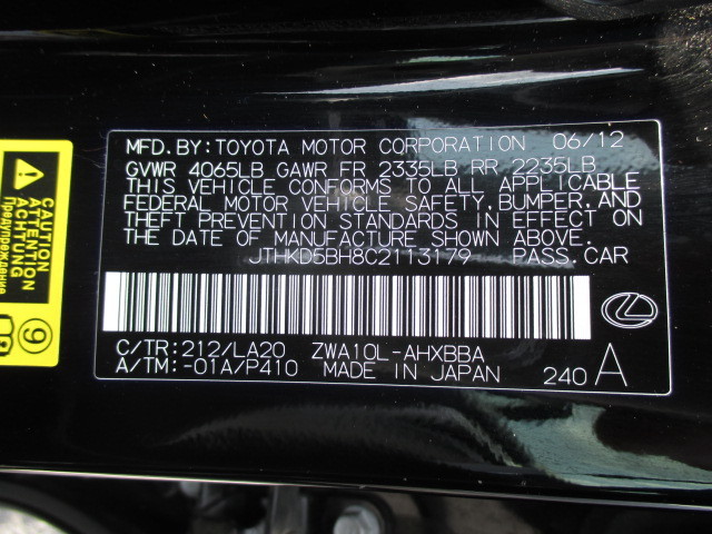 2012 LEXUS CT 200H HYBRID BLACK LEATHER HEATED SEATS NAVIGATION SUNROOF