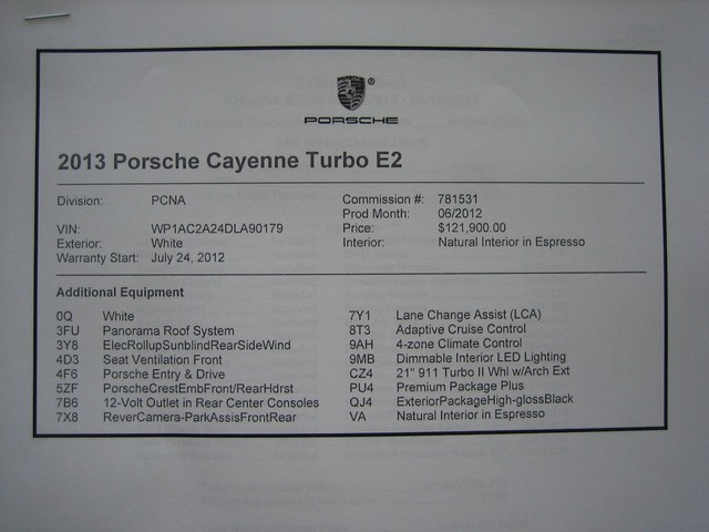 EXTRA CLEAN ONE OWNER LOW MILE CAYENNE TURBO IN A VERY DECADENT WHITE OVER NATURAL ESPRESSO INTERIOR. THIS IS A VERY WELL OPTED TURBO!!