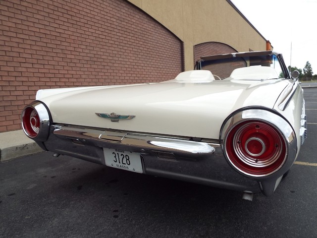 These vehicles have an appreciative group of owners any of which would be pleased to own this one. The suspension and drive line all seem to be in good working order as well as the electrical system. All of the ORIGINAL Chrome and Stainless exterior body trim and body moldings are in VERY NICE condition including VERY NICE ORIGINAL Chrome front and rear bumpers, VERY NICE ORIGINAL badging and a VERY NICE ORIGINAL Chrome and Stainless steel grill and headlight surrounds. Take a look at the AWESOME - FACTORY ORIGINAL -  Thunderbird stainlees steel wheel covers and a set of good whitewall steel belted radial tires, boy does this combination look OUTSTANDING on this Bird and really give it that clean ORIGINAL - "factory look" !!  The Clean - Solid trunk is equipped with a BRAND NEW full vinyl liner, full size spare tire and the ORIGINAL jack and lug wrench. This Drop Top Thunderbird is a good investment opportunity and it is priced right ! It is in very good condition from top to bottom and from front to back. It will not disappoint someone looking for a good example of a sought after and hard to find collector car which is not seen at every stop light for sure. If you have been looking but cannot find a Classic  Thunderbird worthy of your hard earned money look NO further because this is the one ! All of the Original light lenses and reflectors  are clear, bright, UNCRACKED and look BEAUTIFUL !! This vehicle is in nice mechanical condition and it runs and drives very well. It is solid with respect to the overall mechanical condition as well as the overall cosmetic impression. I looked underneath and also included photos below. Please pay close attention to the picture and video above and THE 100 ADDITIONAL PICTURES BELOW and this description as they will answer most if not all of your questions. If you need to speak to me my name is Ross and my telephone number is (208) 866-4055 or you can email if you prefer. As always I tried to get as thorough and in depth with the pictures as possible.