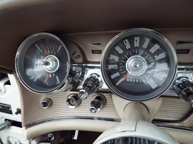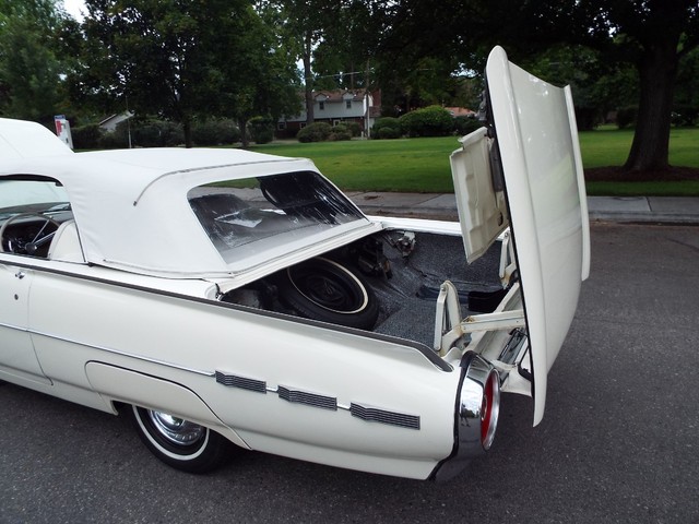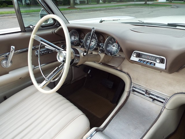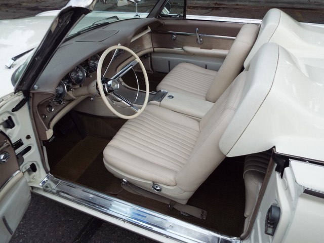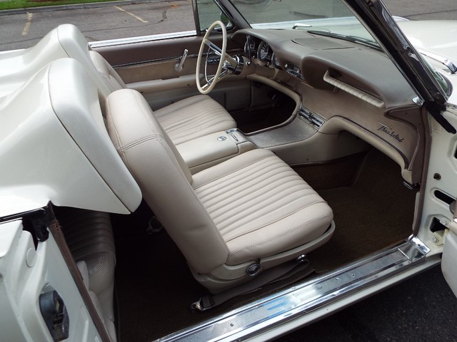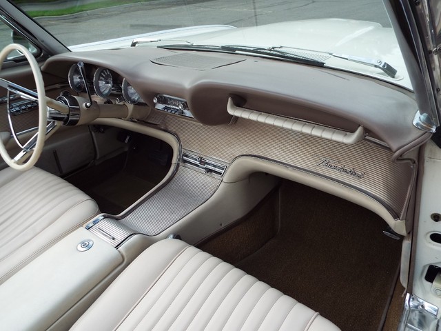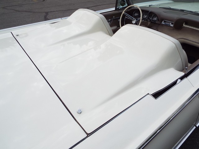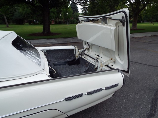 All of the ORIGINAL rubber weatherstripping is soft, supple and in good condition for being original. This car is nicely equipped including a WORKING FACTORY FULL POWER "HIDE-AWAY - RETRACTABLE" - CONVERTIBLE TOP, factory power steering, factory power brakes, factory power windows, factory 4 way power adjustable front bucket seats, factory tilt away steering column, factory front seat belts, good heater and defroster, factory fender skirts, original working  Thunderbird AM / FM radio, original clock which is no longer working, original chrome Thunderbird dual side view  exterior mirrors, factory gauge package with a 120 MPH speedometer,  original day / night rear view mirror, factory power wipers, factory back up lights and factory wing  windows. The Corinthian White exterior finish is EYE POPPING BEAUTIFUL with really little to no wear showing other than a several small chips and imperfections and is still bright and shiny and looks  STUNNING as you can clearly see in the pictures !! This Car is a great runner and a real nice looker. It has great looks and GREAT power as well ! There are not many of these left on the roads for sure !
