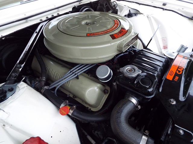 This Thunderbird has what appears to be the Original - STRONG - "Z" Code - GROUND POUNDING - (300 HORSEPOWER from the factory !!) - 390 CID V8 motor in it that is running very well indeed. The motor also still retains the ORIGINAL four barrel intake manifold, ORIGINAL exhaust manifolds, ORIGINAL Thunderbird scripted valve covers, ORIGINAL "Thunderbird Special" scripted air cleaner housing, ORIGINAL  FoMoCo windshield washer reservoir bag and the ORIGINAL four barrel carb. It is amazing how much power this car has, UNBELIEVABLE !! Sounds GREAT too with the - "Throaty" - True Dual factory style  exhaust system. The engine is backed by a SMOOTH - Code "4" - Cruise'O'Matic - three speed automatic transmission which also functions very well. The BEAUTIFUL - Code "84" - Pearl White and Beige vinyl interior is in VERY NICE condition with VERY NICE Pearl White and Beige vinyl front bucket seats, NICE Pearl White center console with a factory padded center armrest, VERY NICE Pearl White  vinyl rear seat, NICE matching Pearl White and Beige vinyl door panels, NICE ORIGINAL Beige vinyl sunvisors, VERY NICE Tan carpeting, VERY NICE ORIGINAL Thunderbird  steering wheel, VERY NICE ORIGINAL Chrome accented dash, NICE Light Beige vinyl dash pad, VERY NICE ORIGINAL interior chrome trim and VERY NICE ORIGINAL gauge clusters.