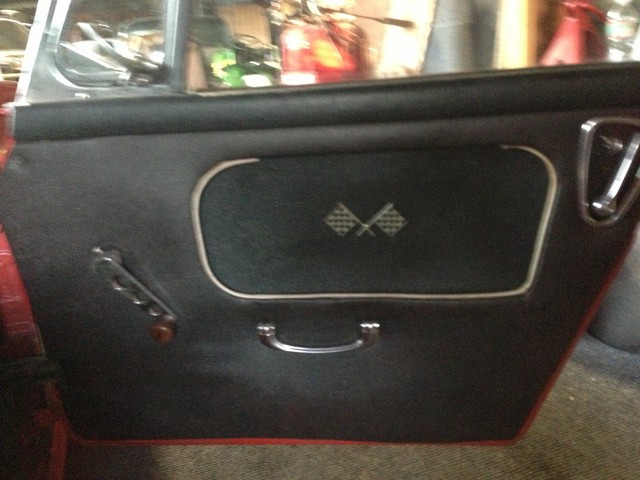 The interior has had the carpet and trim replaced in black in the 1980’s and it still shows very well.  The seats will need to be recovered.  We have tried to order reproductions which are currently on back order and have adjusted our asking price accordingly.  The seat frames are perfect and cushions are good enough to just recover with sets from a supplier such as Moss Motors.  A factory optioned walnut wood wheel is included.