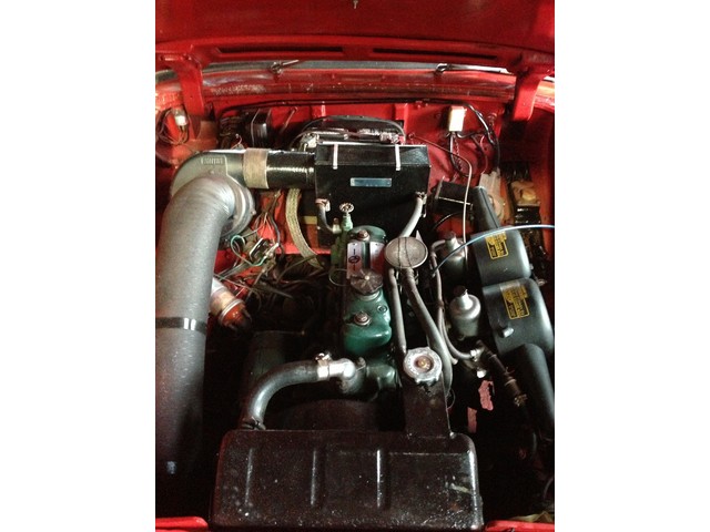 The motor operates perfectly.  The carburetors have been rebuilt, a new upper radiator/heater hose was replaced as well as the thermostat and radiator cap.  All fluids have been changed.  The motor has been properly detailed and returned to almost as new appearance.  The transmission and clutch engage and operate perfectly.  The brake system is largely original with the new wheel cylinders added to the rear brakes.  The suspension is original.