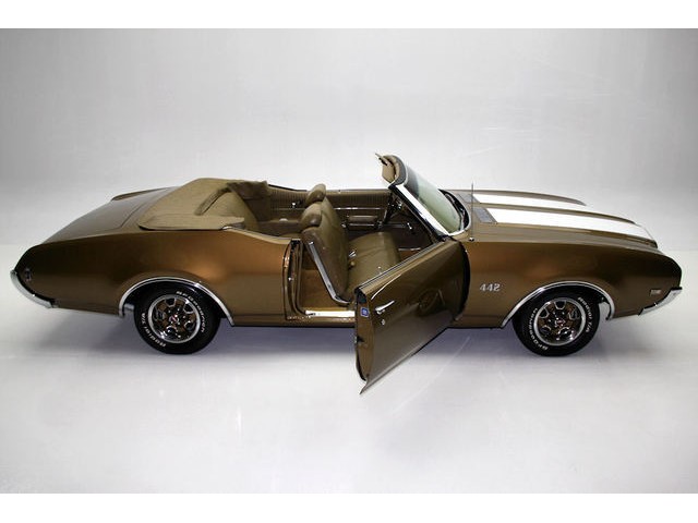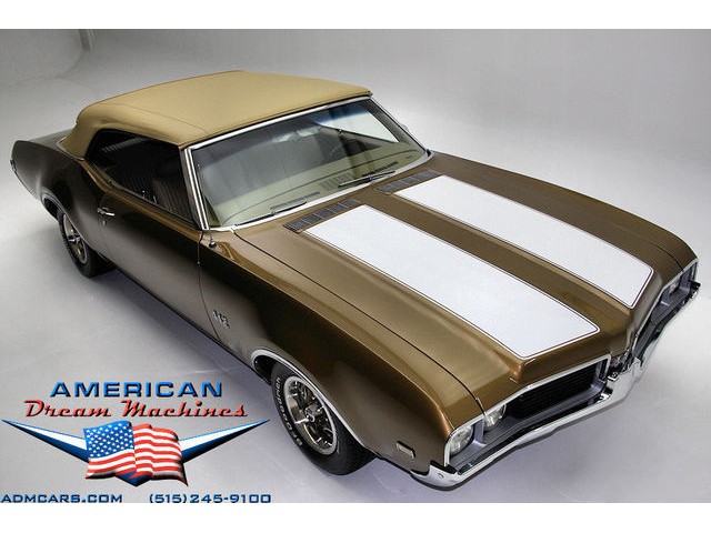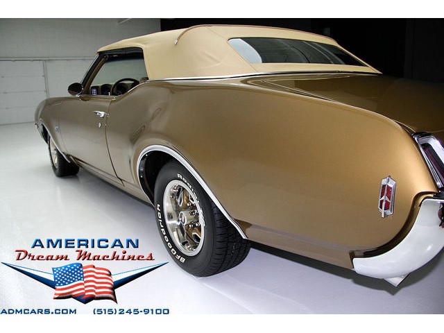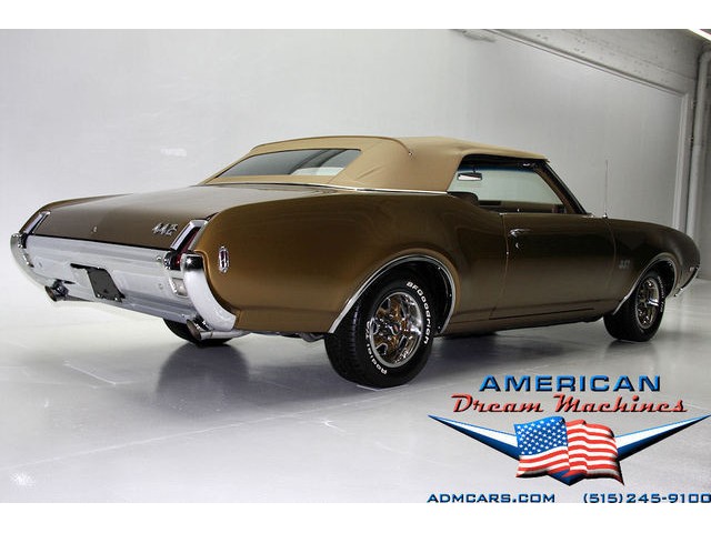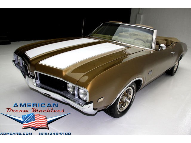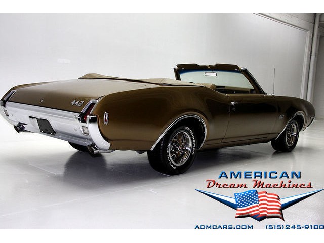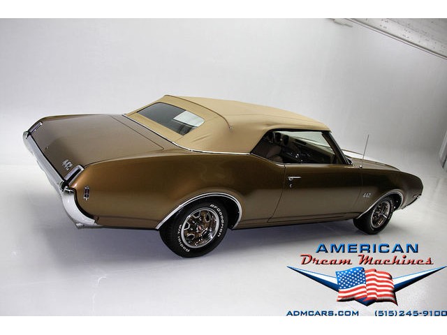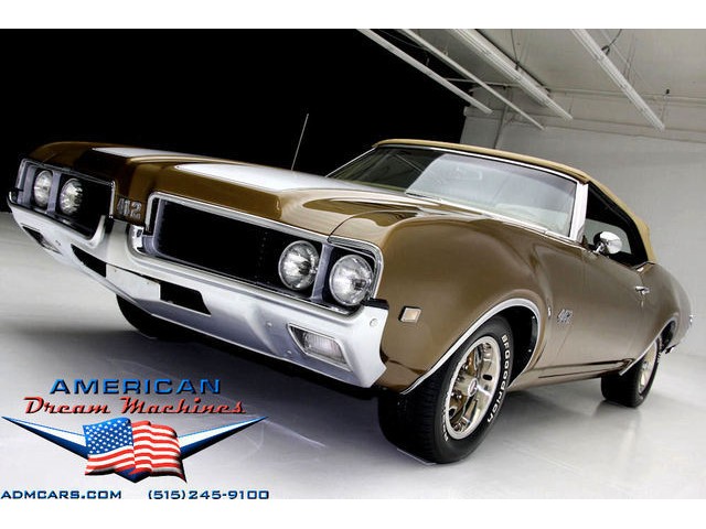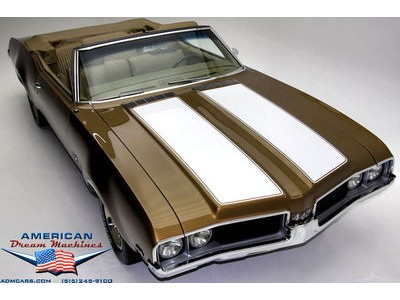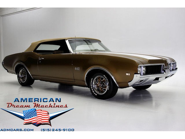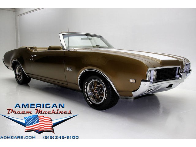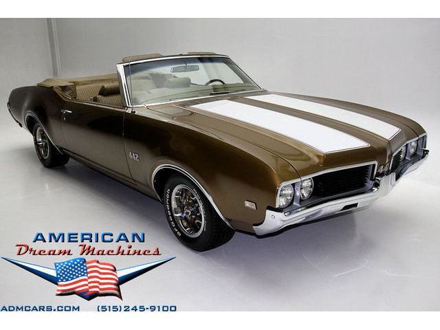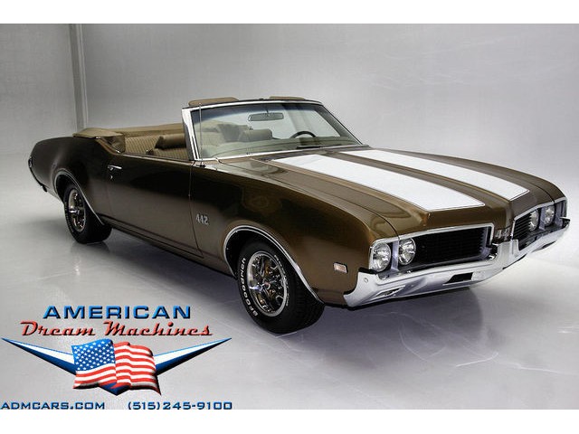 NEW LISTING!! VERY RARE AND DESIRABLE TRIPLE GOLD 1969 OLDSMOBILE 442 CONVERTIBLE,(EXTENSIVE RESTORATION)HIGH PERFORMANCE, 455/375 HP AUTOMATIC. LOADED! POWER STEERING, POWER BRAKES, NEW POWER TOP. ROLLING ON CORRECT 442 MATCHING RIMS AND NEW BF GOODRICH TA RADIALS. This gorgeous triple gold 1969 Oldsmobile 442 convertible is a gorgeous triple gold and has undergone a thorough restoration including paint body, interior, undercarriage and most of the mechanical. The 455/375 HP engine is freshly rebuilt and get with the program, launched by an automatic transmission. Nicely optioned with power steering, power brakes & power top. The interior looks like a new car with a gorgeous dash, instrument cluster, new seat cover and carpet. It has that muscle car sound with new dual exhaust. The car has great curb appeal rolling on correct matching 442 wheels with New BF Goodrich T/A radials. VIN#344679M418111 American Dream Machines is located in the center of the Heartland in Des Moines Iowa. We are one of the largest full service classic car dealerships in the Midwest. We specialize in American Muscle cars with integrity. We usually have at least 80 cars in stock. PLEASE CALL 515-245-9100 AND WE WILL BE HAPPY TO TELL YOU ABOUT OUR CARS. .COM Des Moines largest classic car dealership, ''Specalizing in American muscle cars with Integrity.''