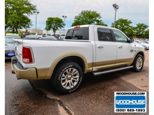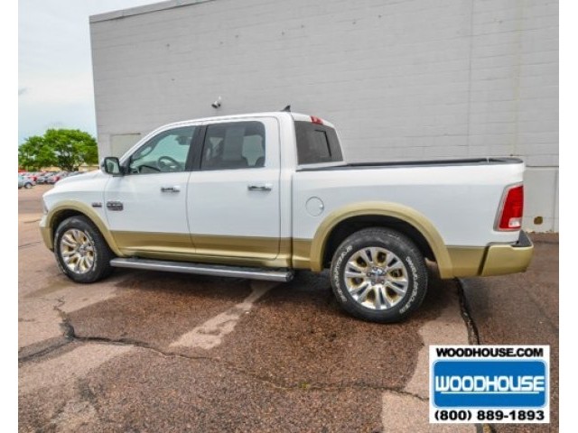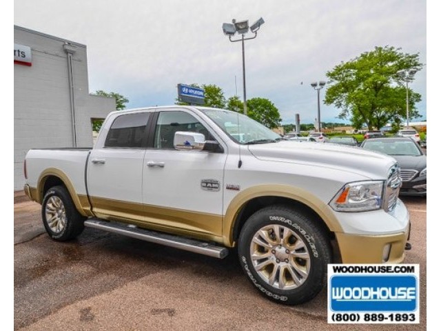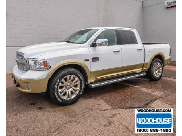 This is a in style truck with its white paint and gold trim design. The Longhorn Edition Ram 1500 is a fully loaded with its V8 5.7L engine and with features like heated side mirrors, cruise control, dual climate control, equipped with a remote start so you can keep your vehicle nice and warm or cool for those extreme climate changes, keyless entry, navigation system for easy turn by turn instructions, dual power leather seats, heated and air-conditioned seats, running boards, alloy wheels, a bumper hitch so you can tow the trailer, fog lights, rear park aid sensors and camera to help avoid objects while backing up, and the Uconnect system allowing you to connect your mobile and media devices for easy access. This is a truck you don't want to miss out with. Give us a call and ask for a test drive today. Call John Sylvester at 712-277-3221.