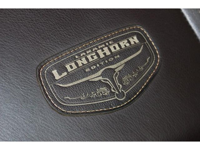 LIGHT PEBBLE BEIGE/BARK BROWN, LAZER ETCHED LEATHER TRIM LOW BACK BUCKET SEATS. Laramie Longhorn Edition with Rugged Brown Pearl with White Gold exterior and Light Pebble Beige/Bark Brown interior features a 8 Cylinder Engine with 390 HP at 5600 RPM*.