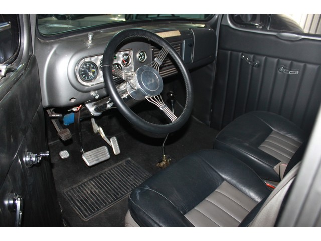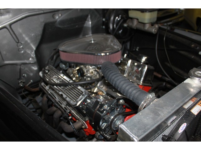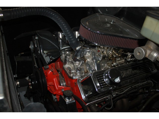 It has 194 heads, a mild cam with an Edelbrock intake manifold and Edelbrock 600 carburetor.  It has a new custom tube short headers with 2 ½ inch exhaust with turbo mufflers.  The transmission is a new crate 350 automatic.  This has power front disc brakes, flaming river steering column and a Lockheart automatic shifter.