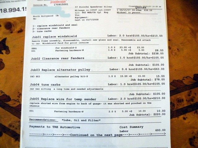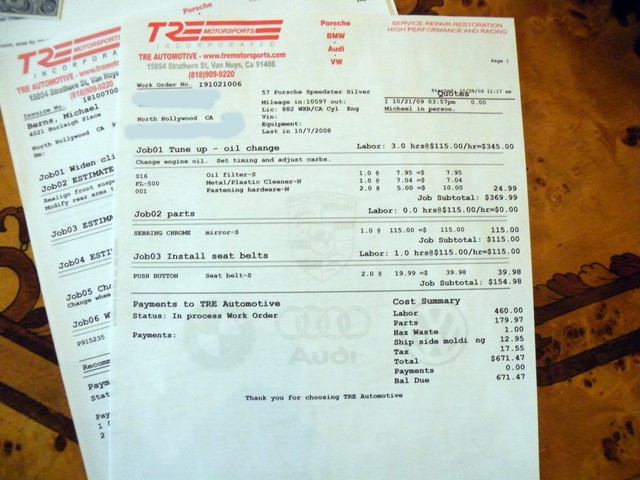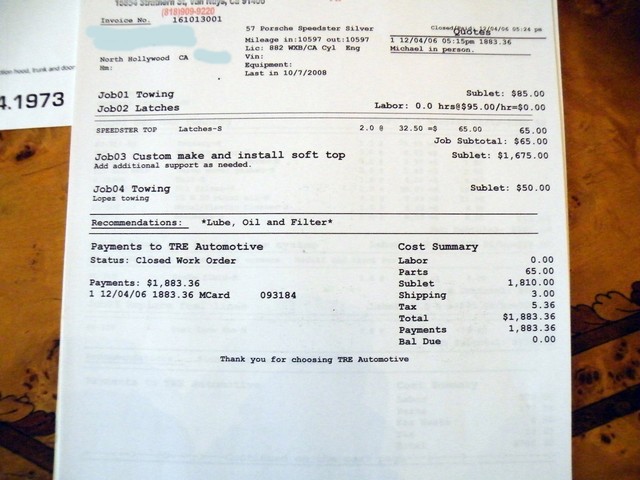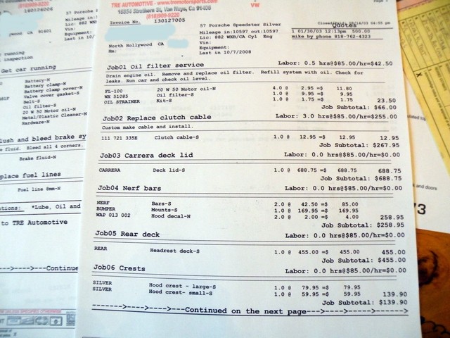 I have some of the receipts for work that has been done to the car pictured below. It comes with a Tonneau Cover and additional rear deck lid (both unpainted). It also comes with a  leather wrapped steering wheel (in addition to the installed Nardi Type Steering Wheel).
