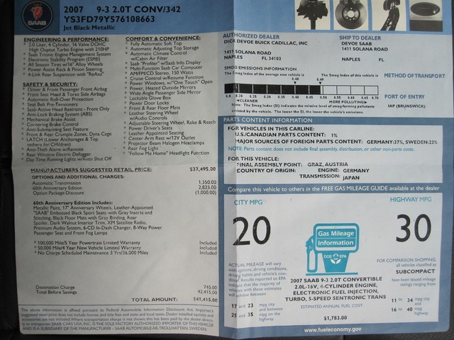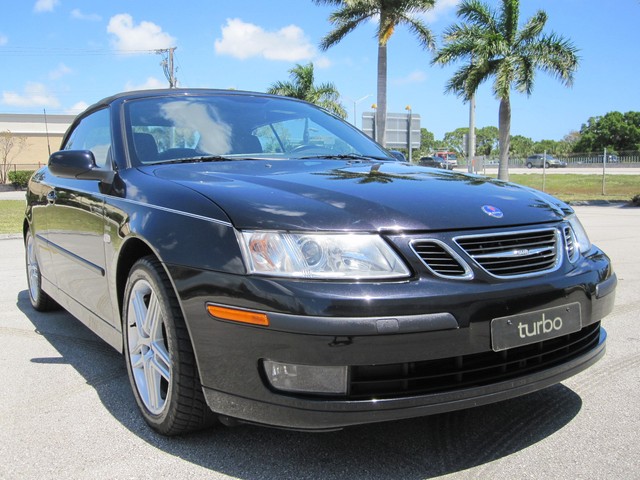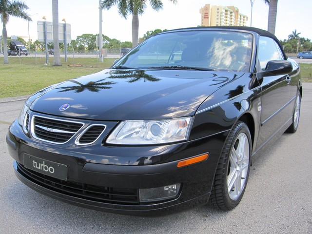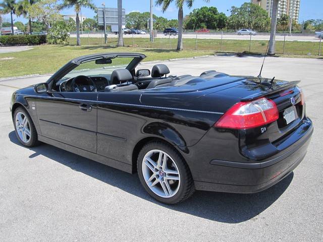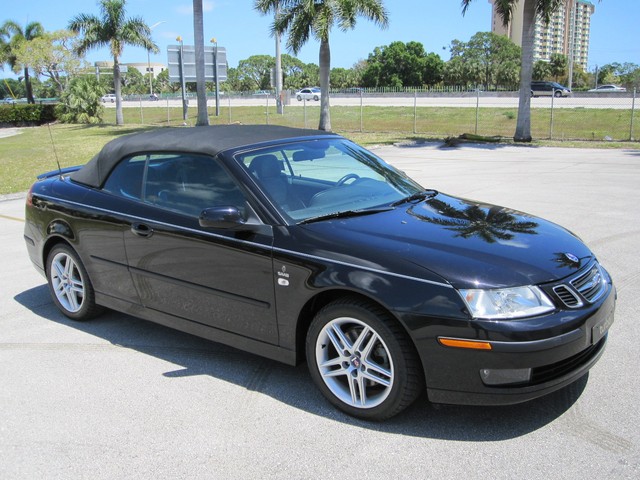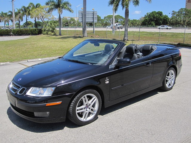 2007 SAAB 9-3 2.OT CONVERTIBLE 60TH ANNIVERSARY EDITION WITH SUPER EXTRA LOW 74K FLORIDA MILES, 2.0L 4 CYL HIGH OUTPUT TURBO CHARGED ENGINE WITH 210 HP, PREMIUM PACKAGE, 60TH ANNIVERSARY EDITION PACKAGE, AUTOMATIC TRANSMISSION, SUPER NICE 17 INCH ANNIVERSARY ALLOY WHEELS, ICE COLD DUAL AIR CONDITIONING, TWO TONE LEATHER INTERIOR, PREMIUM IN DASH SIX CD DISC CHANGER, DARK WALNUT INTERIOR TRIM, FULLY AUTOMATIC CONVERTIBLE SOFT TOP, MULTI FUNCTION SAAB CAR COMPUTER AND MUCH MORE. Up for auction an absolutely gorgeous looking in Jet Black metallic exterior color, Black soft convertible top and Black Sport with Gray inserts Leather seats SAAB 9-3 Convertible that has truly been well kept and maintained. The mileage represented is the actual mileage of this vehicle. This vehicle's history report shows it to be a One Naples Florida Owner vehicle! Clean smell throughout, appears to have never been smoked in. This vehicle has all of its original body parts and appears to have never been in an accident. It has a CLEAN AUTOCHECK history report. Other than a few very minor paint chips (professionaly touched up) the exterior is flawless.  To look this good, it is obvious that this beauty has been garaged. This vehicle's transmission shifts out nice and smooth from gear to gear. The engine is mechanically sound and can be driven anywhere with confidence. The elctrical and optional equipment on this vehicle has been checked to insure that it is all in working condition. This cream puff is a top-flight used vehicle, with no known defects. No warning lights on the dash and No oil leaks makes it a Great vehicle! The beautyful two tone leather interior is clean and polished looking. The convertible soft top is in a great shape, please, see the pictures. Plan a trip or vacation to Florida and we will pick you up at the Ft Lauderdale airport only 15 minutes away. Please call us for more information at 561-317-1916. Thank you for reading and Good Luck!