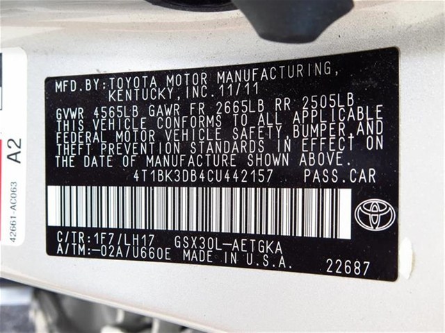 • VIN: 4T1BK3DB4CU442157