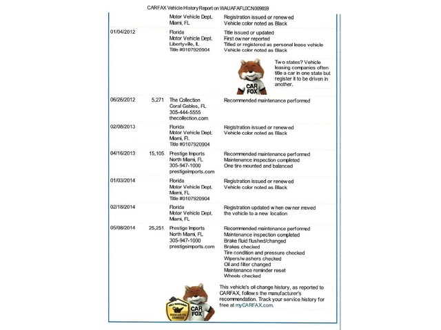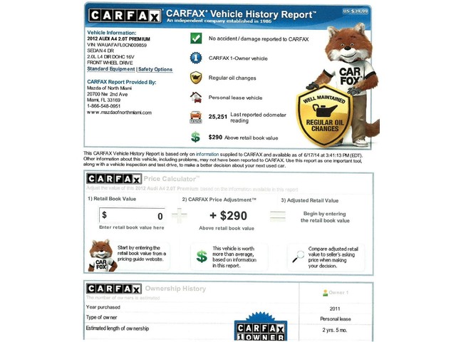 2012 A4 PREMIUM LEATHER SUNROOF CARFAX CERTIFIED ONE FL OWNER FACTORY WARRANTY