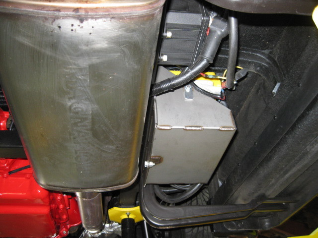 To maximize performance, the front suspension employs a beefy ‘86 Monte Carlo clip and the frame has been boxed and “C” notched in the rear rails for clearance with ride height changes. The nine inch rear end incorporates top-of-the-line Strange fabricated housing. A Ridetech E-3 air pod controls the four-wheel system with three preset levels and independent control, An Aluminum fuel cell, MSD “Atomic” fuel injection and pump complete the high-end package. All of these High Tech goodies hidden under vintage Moon Equipment, finned aluminum air cleaner, valve covers, remote master cylinder reservoir and coolant recirculation tank.