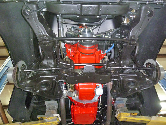 It’s also been tastefully fitted with modern comforts like ice cold Vintage air, power windows with switches cleverly disguised as original handles, power steering, cruise control, tilt column and, as if that weren’t enough, a killer Sony head unit that accepts your I-Phone or equivalent for Bluetooth operation. The I Pod controlled Stereo really Rocks. Safety features include disc brakes, air bag suspension with OEM reliability, and a drive train that has been modernized with Vortec style 350 cubic inch Chevy engine with a modified 4L60E, 4 speed overdrive lockup automatic transmission and controlled by a TCI EZ TCU unit with stock and user programmable shift points and firmness controls.