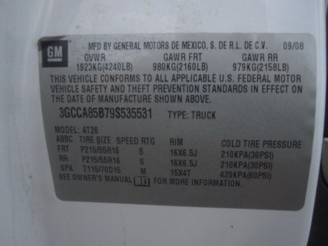 VIN: 3GCCA85B79S535531   Interior Color: Black