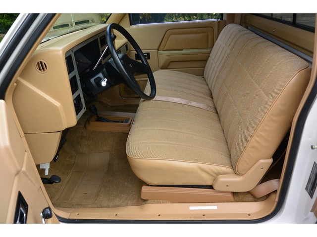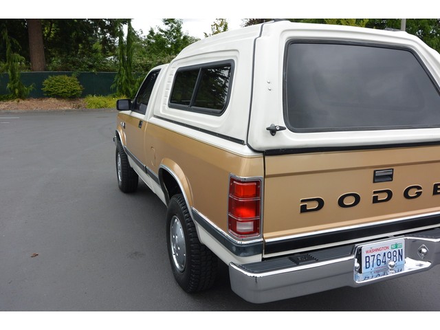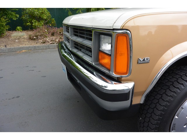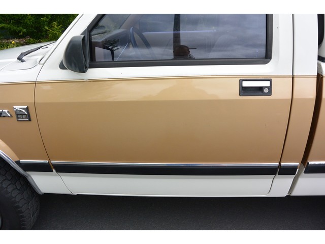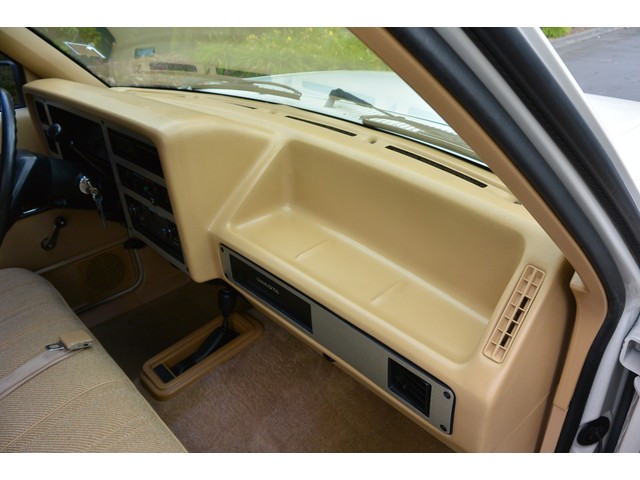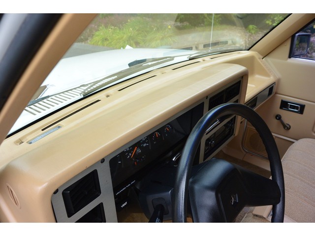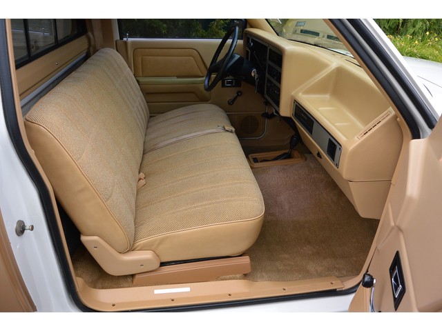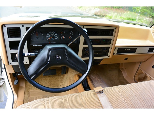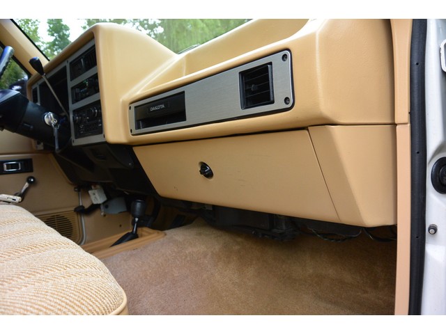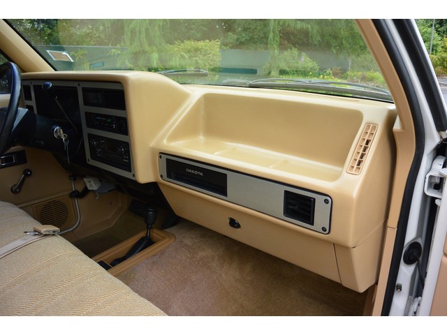 INTERIOR- INSIDE THIS DAKOTAS INTERIOR CHALLENGES THE EXTERIOR IN CONDITION AND YOU COULD NOT FIND ONE NICER. THE INTERIOR LOOKS NEARLY BRAND NEW AND NEVER TO REALLY BE USED AND IT ALL ORIGINAL 1987 FACTORY CORRECT THAT IS A NON SMOKER FROM NEW WITH AN UNUSED LIGHTER AND ASH TRAY.  THE SEAT, DASH, DOOR PANELS, SUN VISORS, HEADLINER AND ALL PLASTIC TRIM IS IN PERFECT SHAPE WITH NOT ONE MARK OR NICK AND IS FULL OF RICH COLOR. THE CARPET IS STILL FULL OF COLOR WITH NO FLATTENING, WEAR MARKS, STAINS OR HOLES AND EVEN STILL HAS THE TIGHTLY WOVEN PATTERN IT WAS NEW AND INCLUDES THE ORIGINAL FLOOR MATS WHICH WERE PULLED OUT TO SHOW THE NICE CARPET CONDITION, BUT THE TAN CARPET HAS SOME VERY FAINT SUN FADING IN THE SIDES OF THE CENTER HUMP AREA. OVERALL THIS DODGES INTERIOR IS INCREDIBLE AND IS AS CLOSE TO PERFECT AS YOU CAN GET AND NICER THEN I EVER IMAGINED A INTERIOR CAN BE ON A TRUCK THAT IS NEARLY THREE DECADES OLD!!