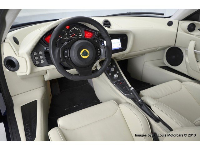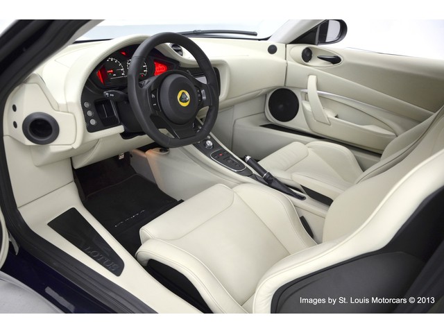 You are viewing a NEW 2013 Lotus Evora IPS S 2+2 finished in Nightfall Blue over Ivory hides with Black Secondary Contrast.