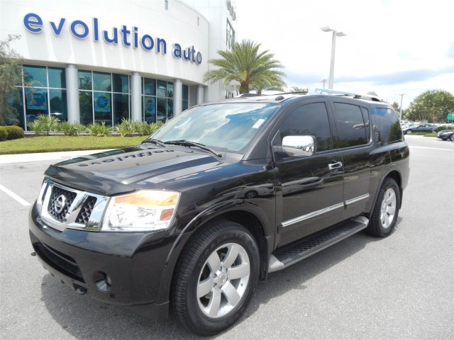 *ONE OWNER *LEATHER *BACKUP CAMERA *TOW HITCH *ALLOYS *RUNNING BOARDS ONE PRICE STORE! NO DEALER FEES! Safe and reliable, this pre-owned 2011 Nissan Armada SL lets you cart everyone and everything you need in one vehicle. It comes equipped with these options: Intermittent rear wiper, Front & rear stabilizer bar, Outside temp display, Rear wheel drive, Auto leveling rear suspension, 4-wheel independent suspension, Pwr windows w/auto up/down, Active front head restraints, 4-wheel disc brakes, UV-reducing solar glass windshield. Pilot the whole group in the comfort of every amenity in this tried-and-true Armada.A short visit to Evolution Auto Sales LLC located at 1300 Rinehart Rd, Sanford, FL 32771 can get you a hassle free deal on this tried-and-true Armada today! DRIVEN TO EXCEED EXPECTATIONS! *Carfax Accident*
