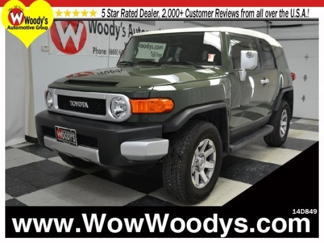 4x4 4.0L V6 CD Stereo w/Aux, Tow Package, Alloy Wheels, JBL Audio System w/Subwoofer, Running Boards, Bluetooth Connectivity, Voice Command, Certified Warranty Set down the mouse because this 2014 Toyota FJ Cruiser is the SUV you've been looking to get your hands on. Leave all the pavement-locked crowds behind with the off-road ability of this FJ Cruiser.Price includes $500 instant rebate when financed through a Woody's Lender.Want a custom video? Just text your first & last name and the stock# to 660-247-5319.This vehicle's stock# is 14D849-114 |Check out www.woodyswow.com to see why we're different! Woody's is an Honest, Up-Front, One Price Dealership selling new & used cars in the greater Kansas City area. Check out what over 2000 customers are saying at over2000reviews.com When it comes to Price, we're third party verified among the lowest In The Nation! This vehicle is certified with a **Pre-Owned Warranty** at no cost to you!Not sure which vehicle you want? With the largest 10AcreMegaLot and most diverse inventory in Middle America you can view all makes in one location! Check out our website to see 800+ vehicles, 50+ Pictures, Videos, Free History Reports and more! www.wowwoodys.com You can search by payment, get a trade appraisal, and setup financing all at www.megawoodys.com now or just call us toll free at (888) 881-0393 to schedule a test drive.The majority of our vehicles qualify for Woody's Assurance Program which includes a 12 Month Return Policy, Limitations Apply, See Dealer for Details.Some of our customers say, Help me find a car or just find me a car We can find you any used car, used truck, used suv. Plus, We will pick you up at the airport or ship your vehicle to you! Our award winning Finance Management Team works with over 15 local and national banks to get you the best rate and term. If you would like to save time just visit our www.wowwoodys.com website to access our Trade Appraisal Tool and Online Secure Credit Application. We also offer an online payment calculator so you can setup different down payment/monthly payment options.[Image]