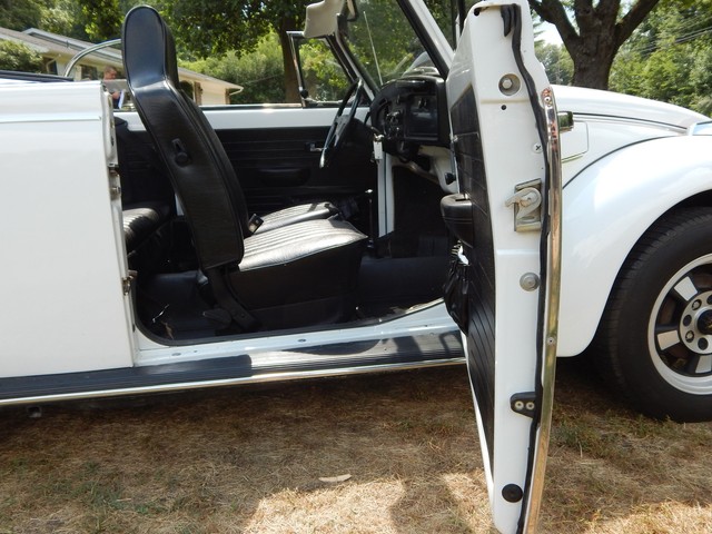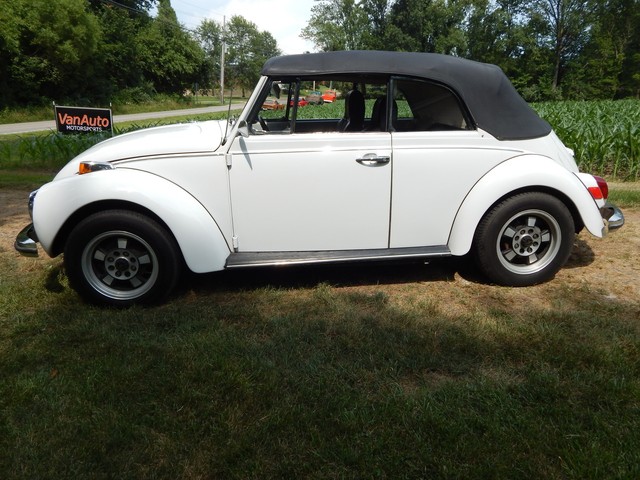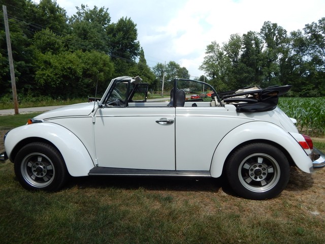 Wanda is a manual transmission, 1600 cc engine that works well. It offers a fun, energetic performance that may not be the fastest, but is certainly entertaining. The wheels are Spirit of America aluminum mag with like new tires. Some features included are AM/FM Stereo, cassette player, and front bucket seats. The interior is in almost perfect condition, which can be seen in the pictures. Black vinyl seats with seatbelts. The black vinyl convertible top is in great condition. This is a great car to get for the Beetle lover in your family. Wanda provides a fantastic ride to cruise and enjoy that summer weather.  Just put the top down and the parade boot on and get cruising.