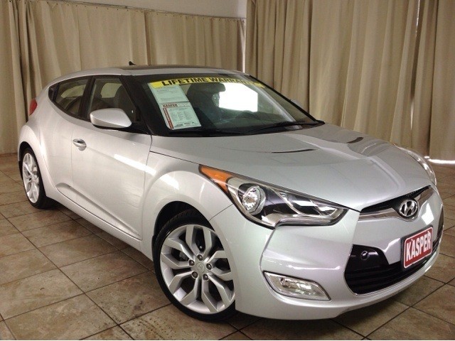 Wow! What a sweetheart! Silver Bullet! Want to stretch your purchasing power? Well take a look at this superb-looking 2012 Hyundai Veloster. This car is nicely equipped with features such as 4-Wheel Disc Brakes, 6 Speakers, ABS brakes, Air Conditioning, Alloy wheels, AM/FM radio, Anti-Lock Braking System (ABS), Brake assist, Bumpers: body-color, CD player, Driver door bin, Driver vanity mirror, Dual front impact airbags, Dual front side impact airbags, Electronic Stability Control, Emergency communication system, Front anti-roll bar, Front Bucket Seats, Front Center Armrest w/Storage, Front reading lights, Front wheel independent suspension, Heated door mirrors, Illuminated entry, Low tire pressure warning, MP3 decoder, Occupant sensing airbag, Outside temperature display, Overhead airbag, Overhead console, Panic alarm, Passenger door bin, Passenger vanity mirror, Power door mirrors, Power steering, Power windows, Power Windows & Door Locks, Premium Cloth Seat Trim, Radio: AM/FM/XM/CD/MP3 Audio System, Rear anti-roll bar, Rear window defroster, Rear window wiper, Rear Wiper, Remote keyless entry, Remote Keyless Entry w/Alarm, Security system, Speed control, Speed-sensing steering, Split folding rear seat, Spoiler, Steering wheel mounted audio controls, Tachometer, Telescoping steering wheel, Tilt & Telescopic Steering Wheel, Tilt steering wheel, Tire Pressure Monitoring System, Traction control, Trip Computer, Trip computer, and Variably intermittent wipers. This fantastic Hyundai Veloster would look so much better waiting for you in your driveway instead of sitting here idly on our lot. As usual, it's ready...Come and get it! BUY WITH THE CONFIDENCE AND PEACE-OF-MIND OF A NO CHARGE LIFETIME WARRANTY! All new and used vehicles come with Kasper Toyota's LIFETIME WARRANTY at no additional charge! Features no deductible, paid 100% parts and labor, no maximum term or mileage, and nationwide coverage!  Kasper Toyota's Lifetime Warranty is a non-factory warranty good at any ASE certified repair facility in the United States. $250 document preparation fee extra.