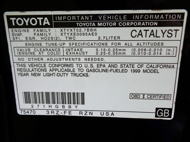 Hello and thanks for stopping by our "No Reserve" auction for this 1999 Toyota Tacoma SR5 PreRunner extended cab, 2.7L automatic, pick-up truck with ice cold air conditioning. Thoroughly checked out, serviced and ready to go. The timing belt was checked and is in great shape, probably was recently replaced. Only 2 previous owners. Looks as if this truck was regularly serviced and well maintained evident by how it looks and how it feels. The economical 2.7L, 4-cylinder engine sounds great, runs great, feels strong and has good power power. The 4-speed automatic, transmission shifts smooth and properly, no known mechanical issues at all at this time. As you can see in the many detailed photos taken, the "Black" metallic exterior is in overall good condition for her year. The "Gray"  upholstery looks really good, no rips, no dash pad cracks, headliner and steering wheel look great. Features, 15" alloy wheels, front air bags, spare tire, jack, owner's manual, 12V outlets, sliding rear window, ECT, fold up/down rear seat bottoms, folding rear drink holder, receiver hitch with ball mount, ball and pin, tinted glass, floor mats, tilt steering wheel, Kenwood detachable faceplate CD player, satellite radio ready(subscription service) and more! Really looks like this truck was handled with love. Please take a look. Please note, all of our vehicles are free from any and all liens. You will receive a clean title. We also use our detailed pictures as a physical description so look at them all. Please read our “Terms and Conditions” below. Pre-sale inspections are welcomed. All cars over 10 years old are sold exempt on miles. Please do not assume anything. Aside from Ebay's finance, we do offer financing possibilities as well as we do accept trade-ins. Extended warranties are available for specific vehicles, please ask the selling dealer for details. Please provide VIN# and photos. If you have any questions about this or any of my other auctions, please feel free to contact me, Avi Fraser, via email at bestofflorida@rollingwheelsinc.com or you can call me, in the office, at 954-527-5522 and I will be happy to help you. We are always willing to negotiate and 4 SURE, WE WILL MAKE A DEAL WITH YOU!! Thank you for your interest and I look forward to hearing from you. Please visit our location at Rolling Wheels 125 E. Sunrise Blvd. Ft. Lauderdale 33304. We are open, M-F, 9am-5pm. Saturday, 9am-4pm. Closed Sunday and holidays. Here's the link to our online credit application: http://www.rollingwheelsinc.com/ApplyOnline.htm