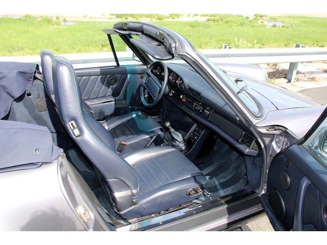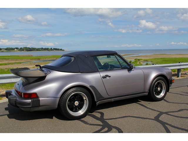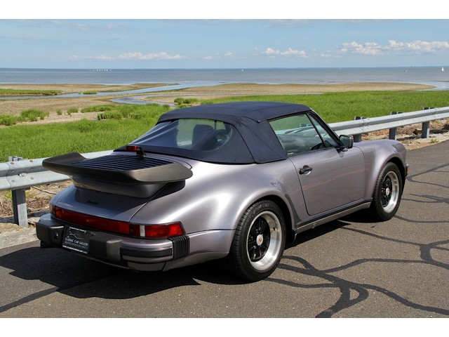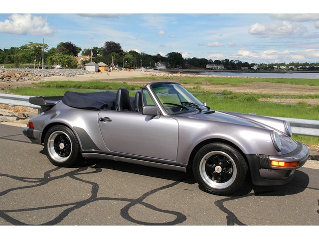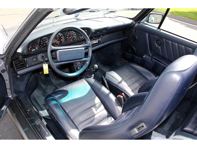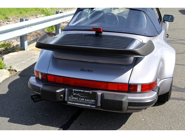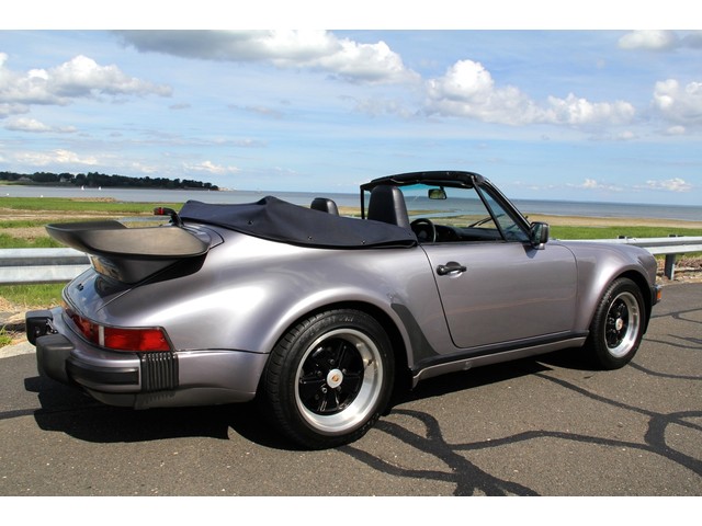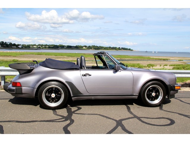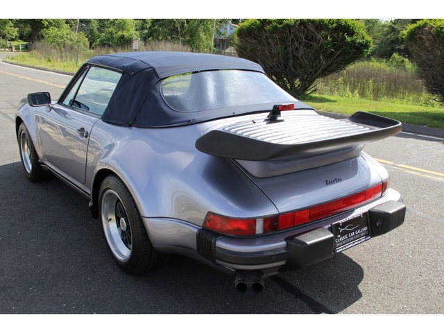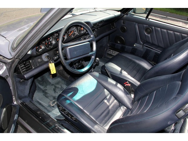 The Classic Car Gallery is offering this gorgeous 1988 PORSCHE 930 TURBO. This car is one of the classic icons of the  mid 80s. This car is the REAL DEAL!!!  With only 38,000 miles, this car is both mechanically and cosmetically superb. The DIAMOND METALLIC paint is excellent and the DARK BLUE leather interior is supple all surfaces are crisp and fresh. The Power seats are in excellent condition, and all of the electrics work as they should. The original carpets are in fine shape. The motor breathes through its stock original exhaust system, makes a wonderful noise and has good power and torque. This low mileage turbo runs flawlessly and the 4-speed transmission shifts as new. The car was the beneficiary of a full engine reseal and transmission rebuild. A new clutch was installed at the time. The car has less then 5000 miles on all of these repairs. The car has the Porsche Locking differential (option 220). The BLUE top is in excellent condition, and the electric top mechanism works as it should. Her original FUCHS wheels are in excellent condition, and the tires have less than 5000 miles on them. We have all of the original books, some records, and original tire pump. This is a gorgeous iconic car, and would make a fine addition to any collection. All of the accessories work as they should, and the A/C blows cold. Rarely driven, this time capsule, 3 owner car has had the best of everything lavished upon it. Needing nothing, this car runs as well as she looks. If you are looking for the finest turbo, look no further. Please feel free to call at 203 256 9800 or email to Steven@classiccargallery.com with any question you may have.