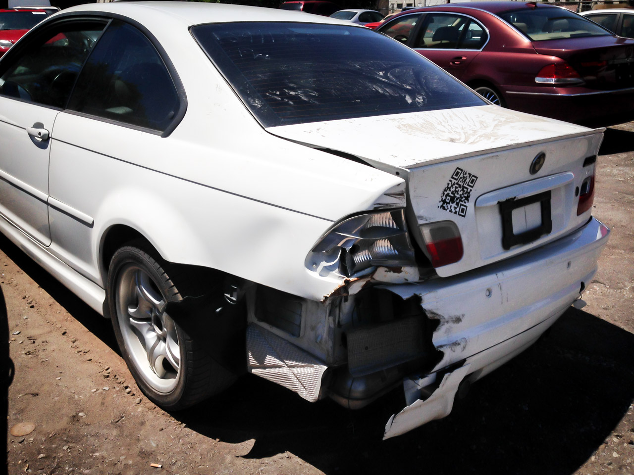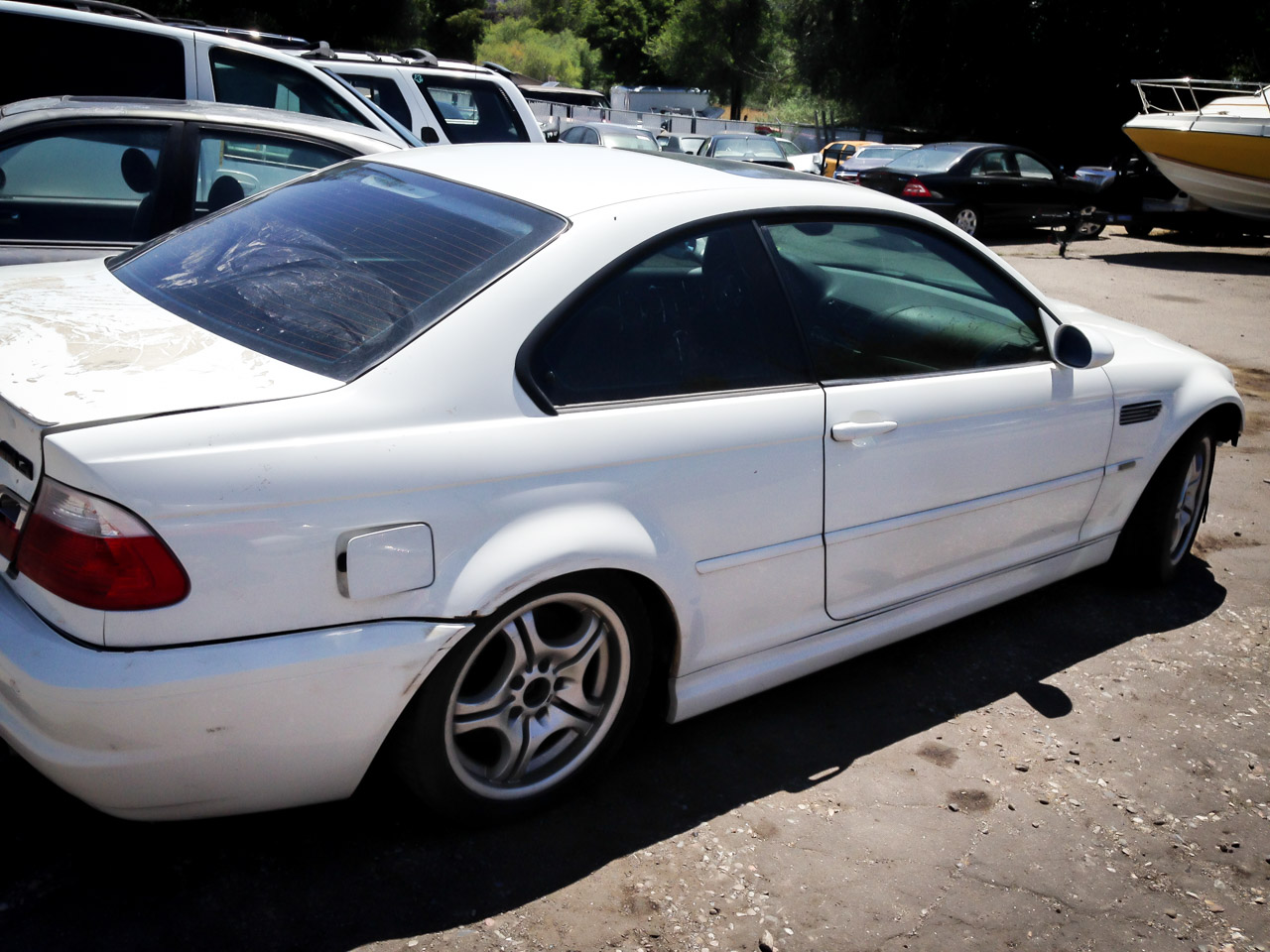 Mechanically speaking, this M3 just needs some suspension work, alignment, and minor body work on the front and rear bumpers. NOTE: you will notice in the photos below of the inside of the suspension and rear bumper closeups that the frame is perfectly straight and did not suffer any major damage. The airbags did not deploy and the seat belts are moving freely. So the hit wasn't too bad. The engine started for us, and the transmission engaged. But because the front left wheel was off the suspension, that was the only reason we couldn't drive it. The SMG transmission is SOOO fun to drive! This WILL be an amazing street racer or track car!! NOTE: The trunk lid was open during the photos, but it closes snug and fit. Call us for any questions. 801-839-4224