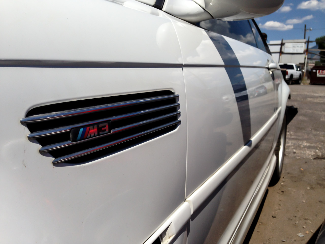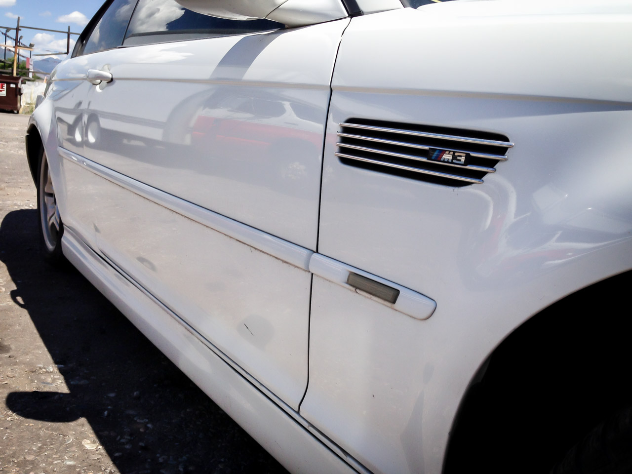 The exterior of this M3 is still in great shape. REALLY, the only thing it needs are two bumpers and minor work on the left front quarter panel and rear left quarter and rear lower left trunk! The left and right sides and doors are perfect as well as the roof. The hood only needs just a small bit of tweaking on the left front. That's IT! NOTE: The trunk lid was open during the photos, but it closes snug and fit. Call us for any questions. 801-839-4224