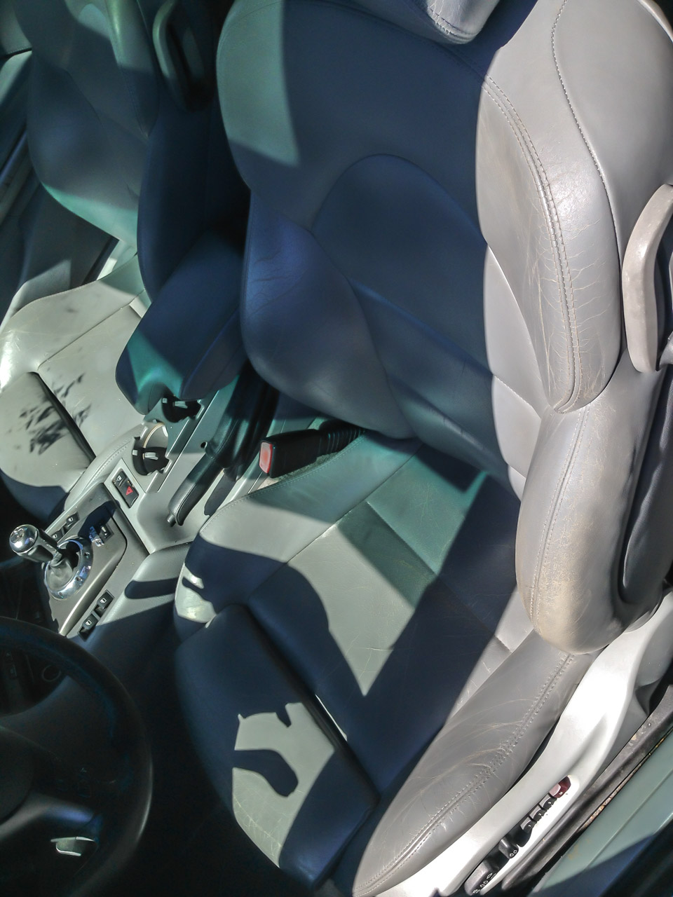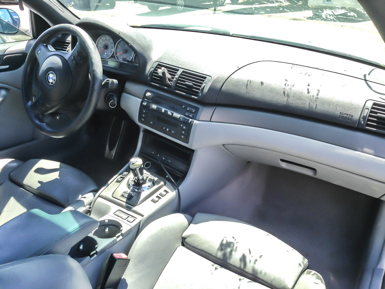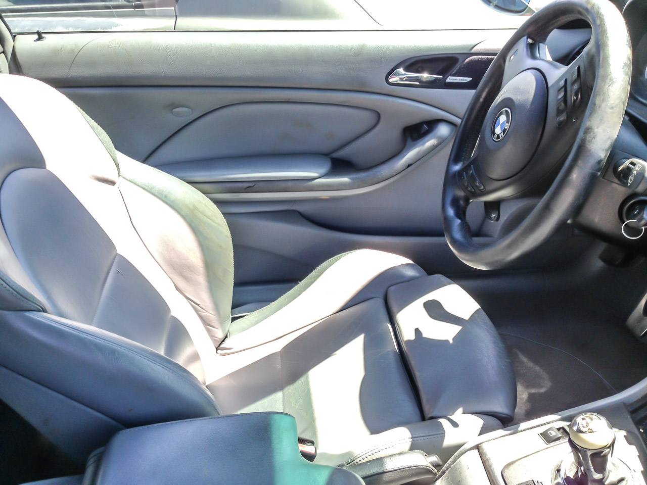 The inside is just a little dirty, but the leather is 100% intact! No rips or tears. This M3 just needs a good detailing. It has all of the standard M3 Package features PLUS a few extra options. The seats and carpets actually pretty solid with no major stains underneath what little dirt is there. Once it is detailed, it should be spotless. Call us for any questions. 801-839-4224