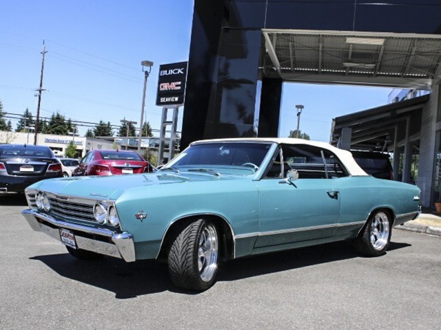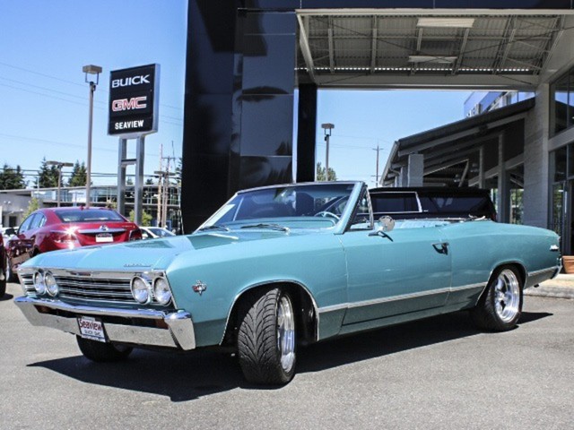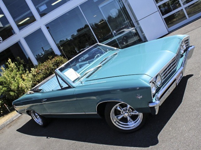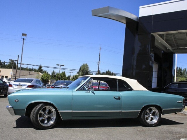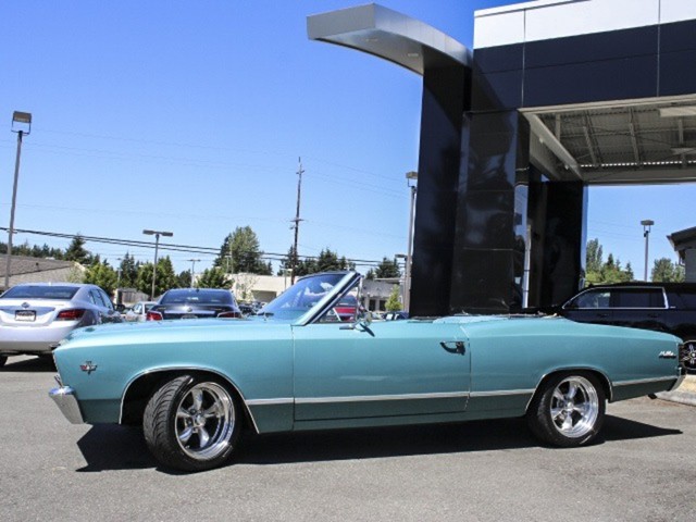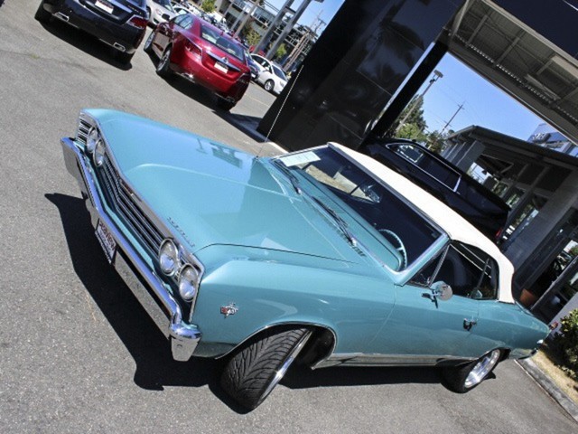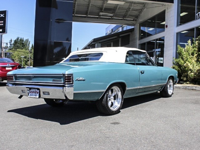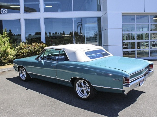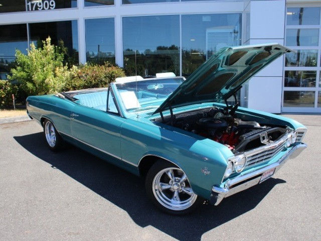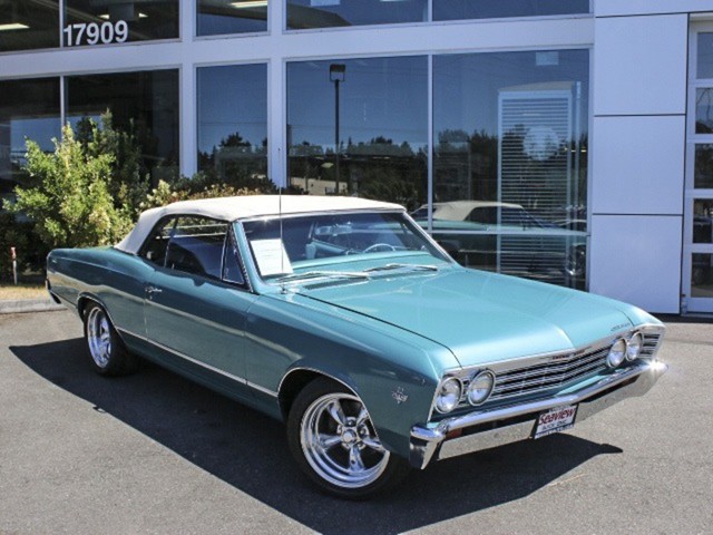 1967 Chevrolet Chevelle CONVERTIBLE. If you are looking for a chevelle convertible , this car is a must to see!! Just delivered from Arizona ,this car has the cleanest sheet-metal I personally have ever seen on a early chevelle !! The quarters,floors ,trunk pan are original,very straight with beautiful turquoise blue paint with the matching interior and boot cover,power white top ,327ci/275h.p.engine, that is original to the car but when rebuilt #s were decked off the top of the block ,700-r-4 trans with over-drive, power brakes,front disc,power steering,new torque thrust polished wheels with brand new rubber,brand new exhaust with flow-masters , super fun to drive .will make a cross-country trip with ease!! for any more info: please call me direct at 1-800-743-1793 thanks Randy world-wide-shipping is available, all types of trade-ins accepted including late-models and other classics ,classic car financing is also available ! thanks for looking , Regards Randy