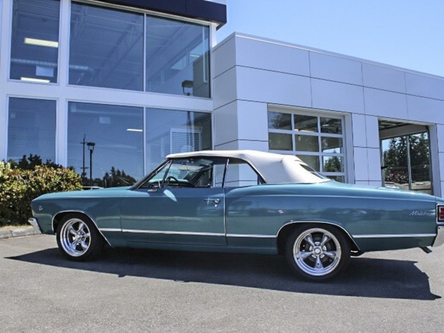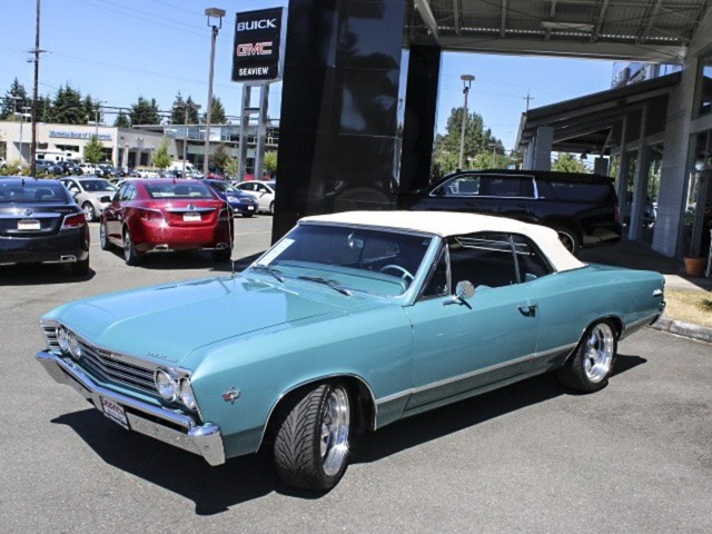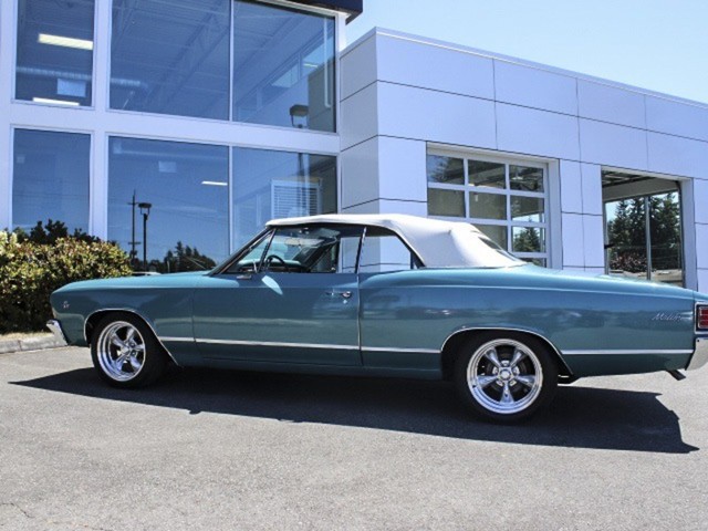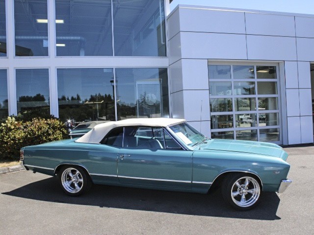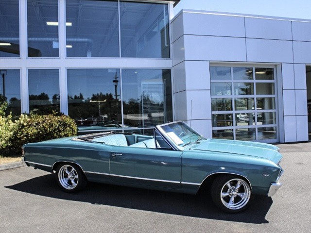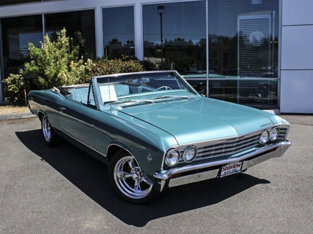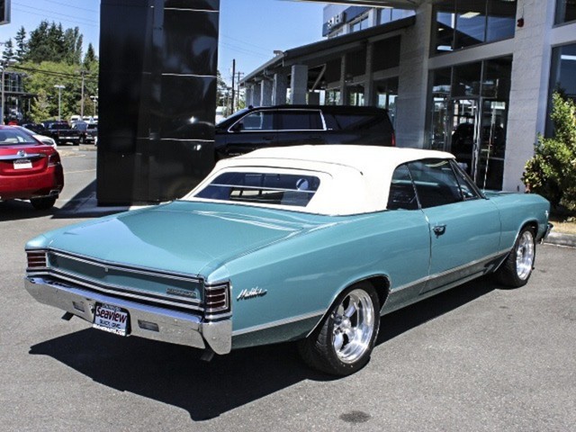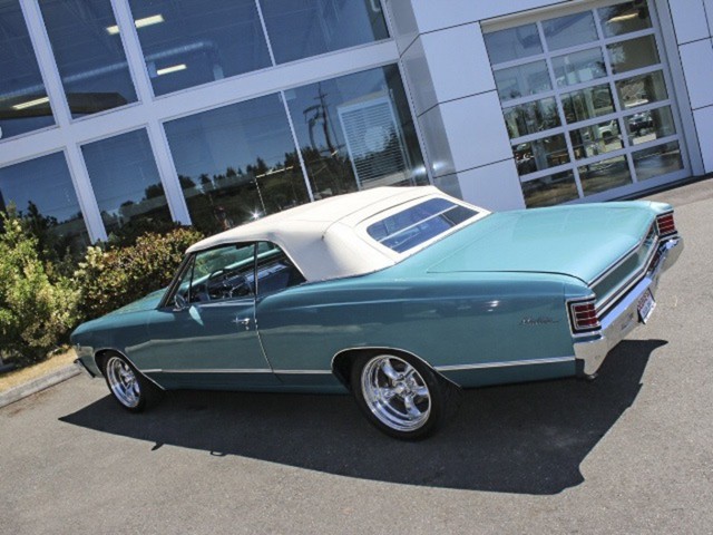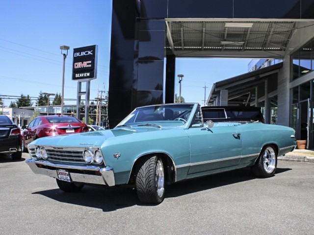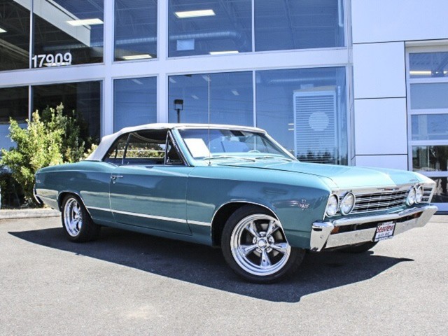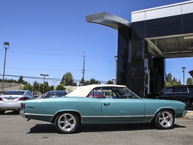 1967 Chevrolet Chevelle CONVERTIBLE. If you are looking for a chevelle convertible , this car is a must to see!! Just delivered from Arizona ,this car has the cleanest sheet-metal I personally have ever seen on a early chevelle !! The quarters,floors ,trunk pan are original,very straight with beautiful turquoise blue paint with the matching interior and boot cover,power white top ,327ci/275h.p.engine, that is original to the car but when rebuilt #s were decked off the top of the block ,700-r-4 trans with over-drive, power brakes,front disc,power steering,new torque thrust polished wheels with brand new rubber,brand new exhaust with flow-masters , super fun to drive .will make a cross-country trip with ease!! for any more info: please call me direct at 1-800-743-1793 thanks Randy world-wide-shipping is available, all types of trade-ins accepted including late-models and other classics ,classic car financing is also available ! thanks for looking , Regards Randy