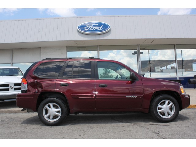 2005 GMC Envoy SLE,  Dark Red, Gray Cloth Interior, Automatic, 2WD,AWD, 4HI, and 4LO Options, 160,000 miles, Engine and Transmission are Strong, Cold AC, Newer Firestone Tires, FullSize Spare, Power Windows, Power Locks, Remote Power Mirrors, Onstar System, TRAILER HITCH, Ice Cold Air, Hot Heat, Has Damage to pasenger-side rear quarter panel(documented in pictures) and smaller damaged area on rear bumper(also in pictures), The Fuel Gauge Does Not Work, The Volt Gauge Doesn't Work Either, The Engine Temp Gauge DOES work, No Check Engine Lights Are ON,  should make a good 4WD SUV for Someone, or fix the body and make some money on it. Call Neal Evans at Tom Wood Ford in Indianapolis, IN. Cell#317-777-4117 or Office #317-848-6764  Email  neal_evans@tomwood.com
