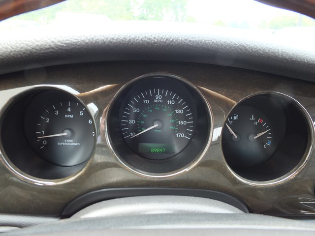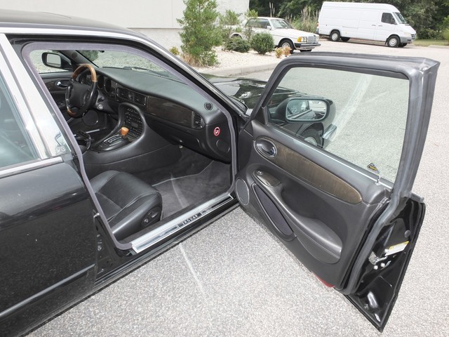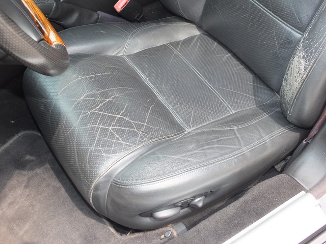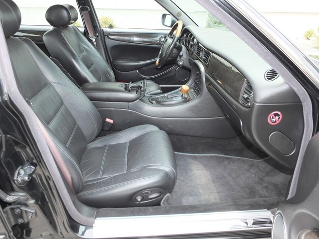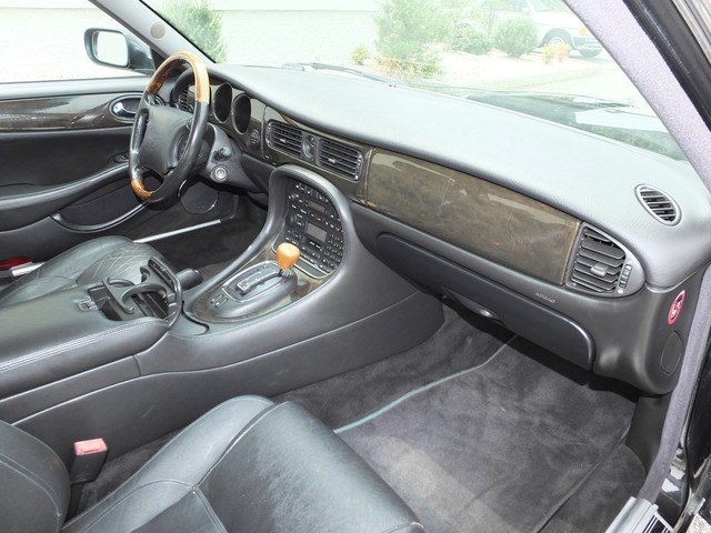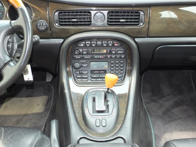THE INTERIOR OF THIS JAGUAR XJR LOOKS GOOD!  THE ONLY BLEMISHES OF NOTE ARE SOME DYE WEAR ON THE DRIVER'S SEAT (SEE PICS BELOW), SOME CRACKS IN THE WOOD TRIM AND A CUPHOLDER THAT WON'T STAY SHUT.