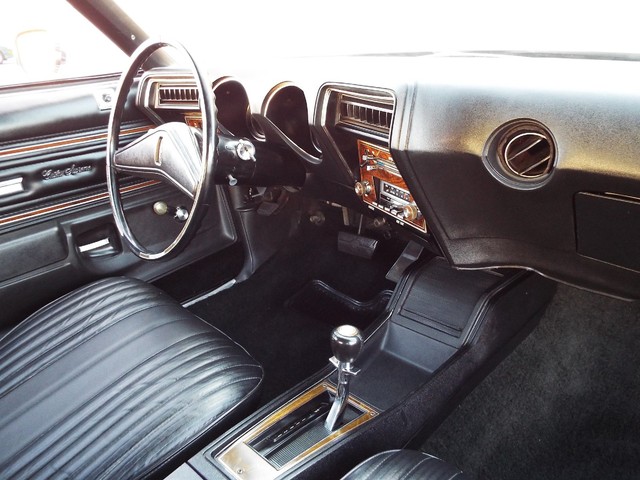 ***  BEAUTIFUL - CODE "19W" - BLACK VINYL AND FAUX WOOD GRAIN ACCENTED CUTLASS SUPREME BUCKET SEAT WITH FACTORY CENTER CONSOLE INTERIOR !!  ***