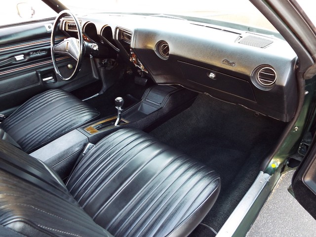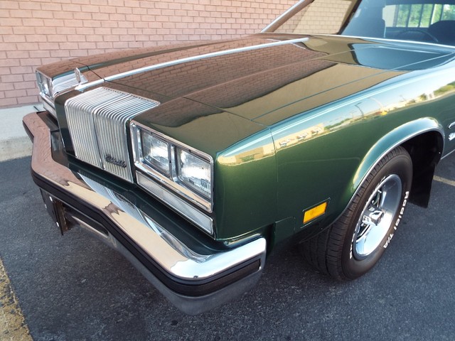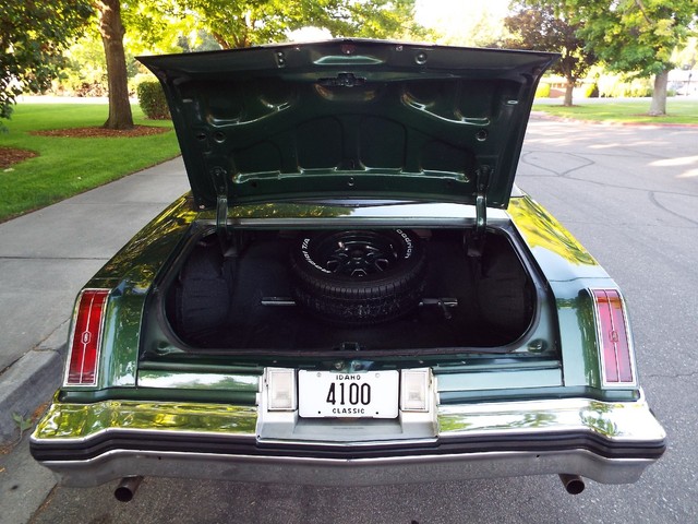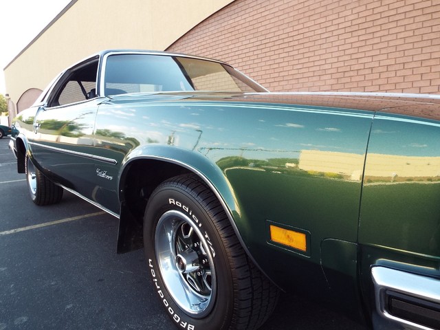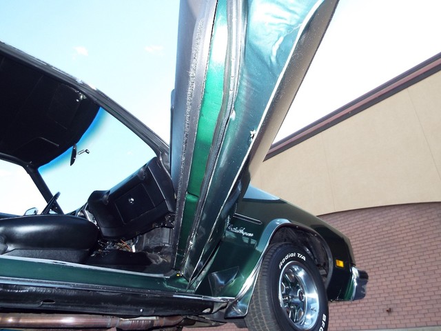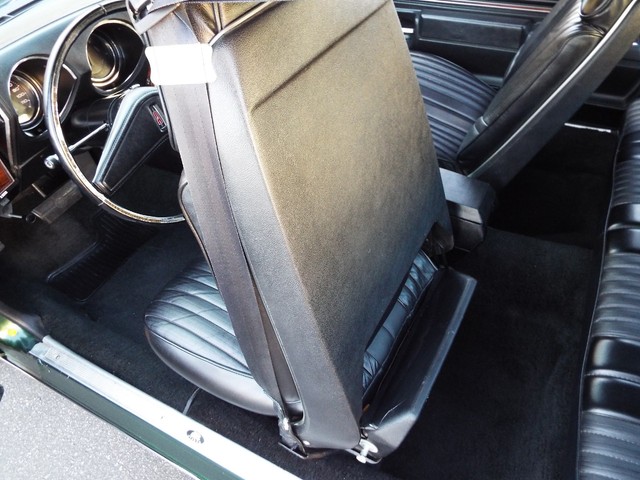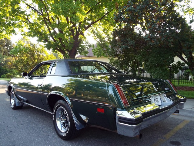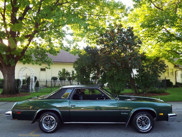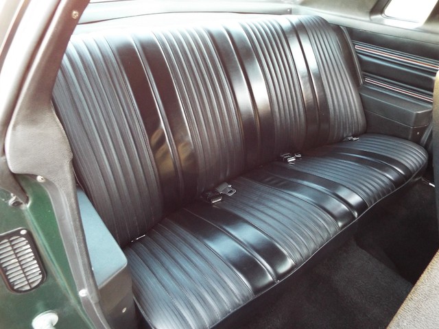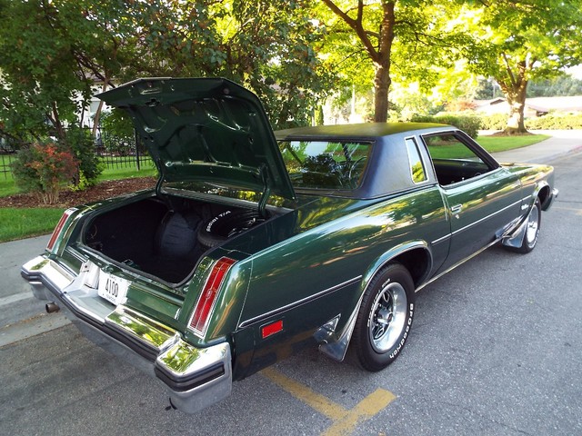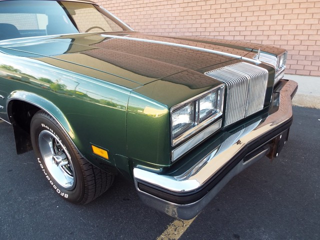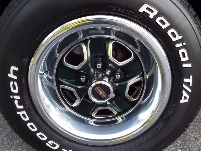 The car has what appears to be the VERY STRONG - ORIGINAL - Code "R" - 350 CID V8 motor in it which is running very well indeed. The motor also still retains its ORIGINAL 4 barrel intake manifold, ORIGINAL  exhaust manifolds, ORIGINAL valve covers, ORIGINAL 4 barrel carb and the ORIGINAL air cleaner housing. Sounds GREAT too with the "Throaty" all stainless steel true dual exhaust system !! The engine is backed by a SMOOTH - REBUILT WITH A MILD SHIFT KIT - three speed automatic transmission that also functions very well. The BEAUTIFUL - MOSTLY FACTORY ORIGINAL !! - Code "19W" - Black vinyl and faux wood grain accented Cutlass Supreme bucket seat interior in this BEAUTY is STUNNING including a VERY NICE MOSTLY ORIGINAL  Black vinyl front bucket seats with factory headrests, VERY NICE  ORIGINAL Black vinyl rear seat, VERY NICE ORIGINAL Matching Black vinyl and faux wood grain accented door panels, VERY NICE ORIGINAL Black and faux wood grain accented center console, VERY NICE ORIGINAL Black carpeting, VERY NICE ORIGINAL Black vinyl headliner, VERY NICE ORIGINAL Black vinyl sunvisors, VERY NICE ORIGINAL Black and faux wood grain accented dash, VERY NICE ORIGINAL factory guage clusters, NICE ORIGINAL Oldsmobile steering wheel and a VERY NICE ORIGINAL Black vinyl dash pad with NO CRACKS !! In my opinion your not going to find a much nicer MOSTLY FACTORY ORIGINAL interior in a 38 year old car than the one that is in this BEAUTY, UNBELEIVABLE !! The FACTORY ORIGINAL Black Full Vinyl top is also in VERY NICE condition for being original. The STUNNING - Code "49" - Dark Green Metallic exterior paint with light green pinstriping is EYE POPPING BEAUTIFUL with very little to no wear showing other than several small chips and imperfections and is still bright, shiny and  looks STUNNING as you can clearly see in the pictures below and the video above. The - Code "19W" - Black vinyl interior with the  complementing - Code "49" - Dark Green Metallic exterior with the  ORIGINAL Black vinyl top is a GREAT color combination indeed ! How could you get any better ?!! The CLEAN - SOLID trunk also sports the ORIGINAL charcoal liner, a full size spare tire, jack and lug wrench.  This Cutlass Supreme is nicely equipped including factory power steering, factory power brakes with discs up front, optional center console mounted locking shifter, factory front and rear seat belts,  working original Delco AM / FM stereo radio, factory guage cluster with a 110 MPH speedometer, good glass, good heater and defroster, original day / night rear view mirror, factory rear window defogger, original chrome driver's remote side view exterior mirror, factory power wipers and factory back up lights. All of the ORIGINAL light lenses and reflectors are also clear, bright UNCRACKED and BEAUTIFUL !!