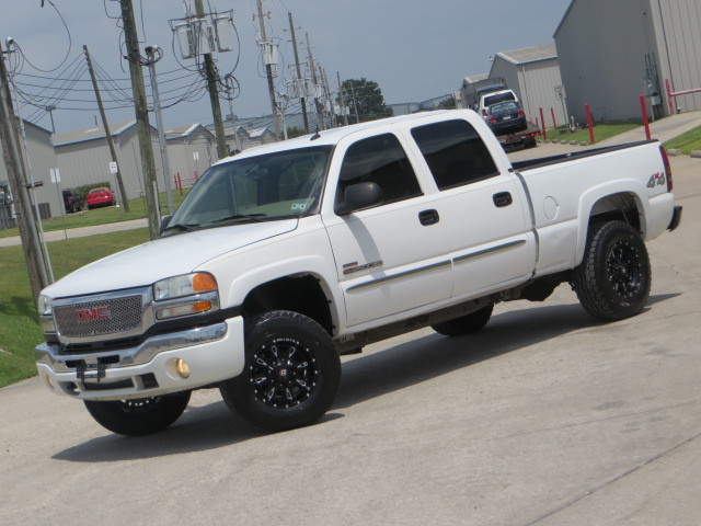 You are viewing our listing on this beautiful, powerful and clean 2004 GMC SIERRA 2500HD SLE2 DIESEL 4X4 from DIESEL OF HOUSTON. This truck comes with 100% CLEAN title, we bought it from Dallas TX and had it inspected prior to our purchased and everything pass just fine. Truck is rust & smoke free, it has nice look (apperance) and nice color combo, the aftermarket wheels and NEW tires gives it a tough look.