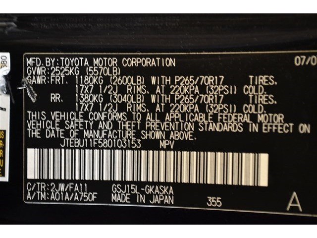 • VIN: JTEBU11F580103153