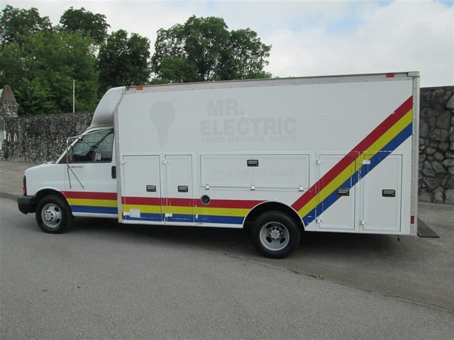 Here is a great way to start or expand your business fleet!  It is a 2004 Chevrolet Express 3500 Cutaway with a enclosed utility box with locking bins.  The utility box has 5 lockikng bins on either side + the center section is enclosed too!  The body is very straight, the hood has paint peeling.  On the interior the seats are very good especially for the miles and age, the vinyl floor mat has a few holes but all in all for 232k it is not bad in or out!  The truck drives out very good, the oil pressure gauge is pegged on the high side so the engine must have been replaced or rebuilt.  The transmission shifts out just fine and the power is what you would expect from the 6.0 liter V8.  It does have cold air conditioning.  The tires are pretty well worn out and it does have some exhaust leaks but the only light on in the dash is the change oil light.  The rear brakes were done recently by an ASE Certified shop.  Price a new like this and see how fast you will be locked in watching this one!  The Car Fax shows 1 owner and the Auto Check shows 2 owner which is correct but only because the individual that we bought it from bought it to resell and both are accident free!
