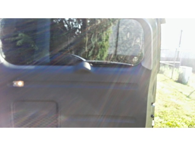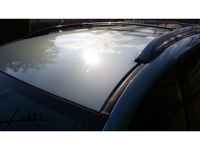 There is a nine inch crease toward the bottom of the passenger side rear door. There is also a little dent on the passenger side quarter.