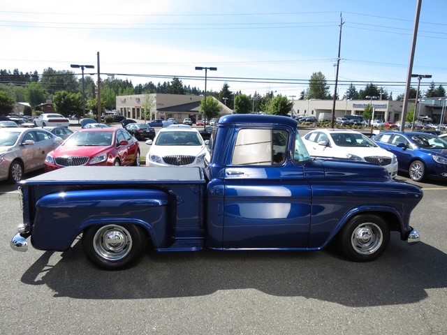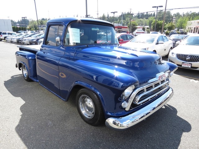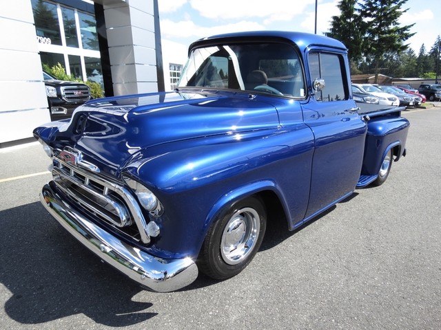 1957 Chevrolet C10 . IF YOU ARE LOOKING FOR A FINISHED CLASSIC PICK-UP TO ADD TO YOUR COLLECTION , HERE IT IS !! BEAUTIFULLY FINISHED IN A METALLIC DARK BLUE PAINT THAT HAS BEEN SANDED/POLISHED LIKE A FLAT PIECE OF GLASS ! LAZER STRAIGHT SHEET METAL,SOLID CAB/DOORS/AND FLOORS ! BODY-OFF THE CHASSIS,NUT AND BOLT RESTORATION ,PAINTED FRAME ,CLIPPED IN FRONT WITH CAMARO SUB-FRAME AND DISC BRAKES,350CI ENGINE THAT HAS APPORX. 350 H.P.,4-SPEED WITH SHORT THROW SHIFTER ,AND TO TOP IT OFF, CORVETTE I.R.S.REAR SUSPENSION WITH REAR DISC BRAKES !! THE INTERIOR IS FINISHED IN BEAUTIFUL BEIGE LEATHER ,FINISHED DOOR PANELS,AND FINISHED HEADLINER ,CUSTOM GAUGES ,POWER STEERING ,POWER BRAKES ,VINTAGE RALLEYS WITH NICE RUBBER ! TURN-KEY TRUCK ! WE HAVE FINANCING AVAILABLE , ALL TYPES OF TRADE-INS ACCEPTED , WE CAN HELP WITH WORLD-WIDE-SHIPPING ! FOR MORE INFO: CALL ME DIRECT @ 1-800-743-1793 THANKS RANDY