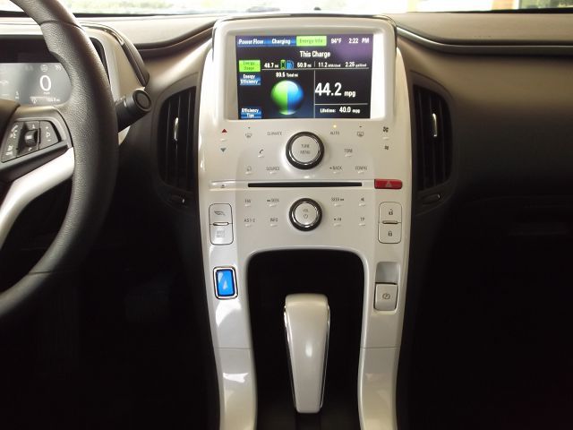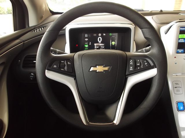 Inside you'll find all seating finished in a textured black cloth. Carpets and door panels are also done in black. The dash is black with white trim. The Volt is very nicely laid out with a center master touch screen.