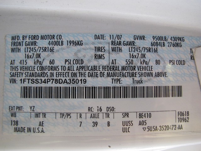 2008 FORD E-350 EXTENDED DIESEL CARGO VAN ECONOLINE POWERSTROKE WORK VAN BOX VAN