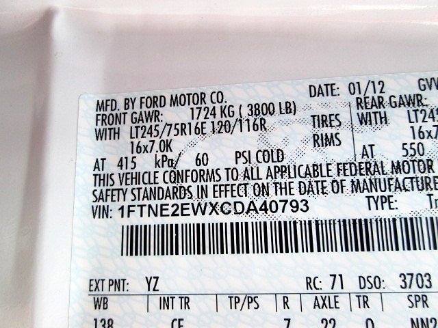 • VIN: 1FTNE2EWXCDA40793