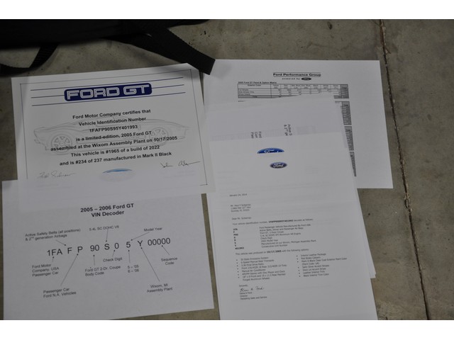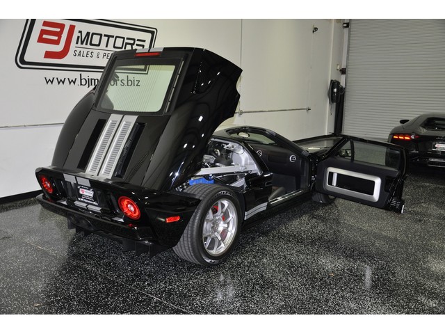 2005 Ford GT Mark II Black with Silver Stripes over Ebony Black leather. Only 452 miles! Built with Lightweight Forged Aluminum Wheels, Painted Silver Stripes, Red Painted Brake Calipers and Super Rare McIntosh Delete! Complete with owner’s manuals, 2 keys and 2 remotes, car cover with bag, battery tender with case, air pump, tow hook, certificate of authenticity , window sticker copy. This GT has been completed with highly desirable upgrades including a Kennebell GT-HCD quick change pulley upgrade, Accufab throttle body and an unbelievably sounding Accufab exhaust system pushing this GT to around 700hp! The stock Ford GT’s supercharged 5.4L V8 produces a massive 550hp and 500 lb-ft of torque. 0-60 flashes by in 3.6 seconds and the top speed reaches 205mph. This car is out of a collection and is absolutely immaculate inside and out. For more information please email bfkatz@bjmotors.biz or call 800-270-1608 ext.1 or direct at 281-865-1683.