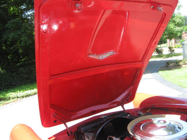 It was decided their car would be made of metal instead of fiberglass; that it would be powered by a V-8 engine unlike the Corvette’s Blue Flame Six”; and that it would feature roll-down windows and an optional hardtop unlike the Corvette’s snap on curtains.  They further decided that it would, as much as possible, utilize the same tooling and parts interchangeability with the big Fords of that era.