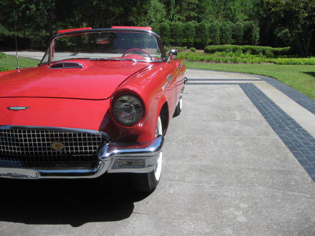 This Magnificent Fully Restored Thunderbird, finished in Torch Red with Red & White Interior, is an Absolute Pleasure to Drive.  Please examine the Show Quality Engine compartment and Undercarriage to better appreciate the Outstanding Restoration Quality. Many “Baby Bird” aficionados consider the ’57 to be the “Last, Most Beautiful  and Most Desirable” of the “Baby Birds” of the era.  It is as ”Straight as an Arrow” and Absolutely Immaculate Throughout.  It is ready for Show or Tour, and garners all the “oohs and aahs” anytime out.