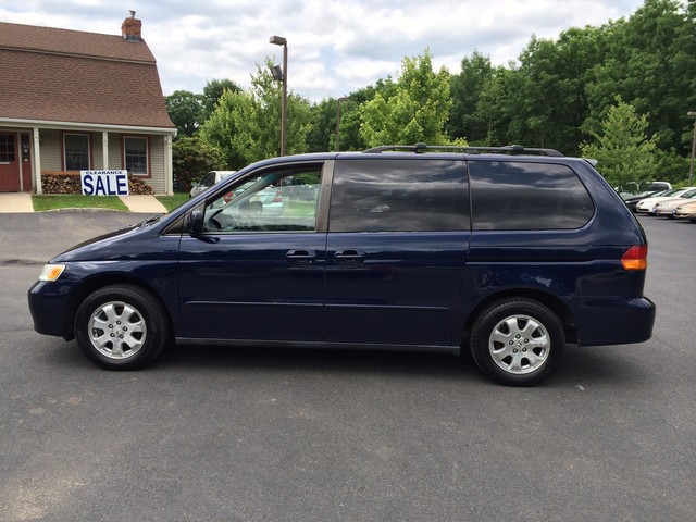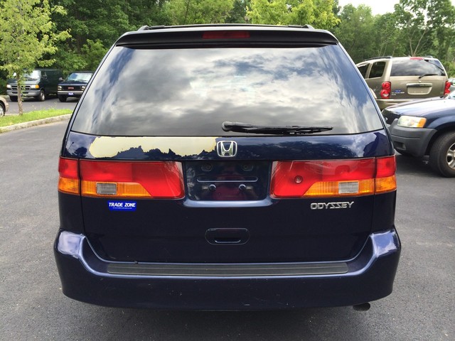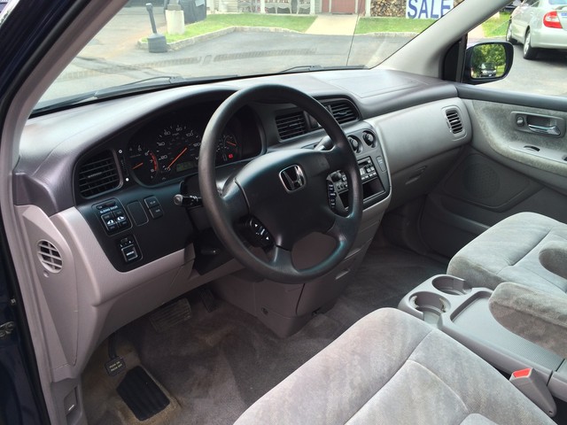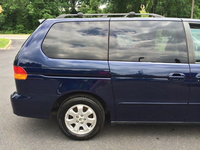 This 2003 Honda Odyssey EX 5 door Minivan had only 1 Previous Owners and No Reported Accidents per the AutoCheck Report shown above.  It also has a valid New Jersey Inspection sticker through 7/15.  This Odyssey runs and drives beautifully and has no mechanical issues.  There are no warning lights lit on the dashboard whatsoever.  I test drove this Honda Odyssey for over  90 miles and it performed fantastic.  The previous owner really took good care of this van.  It has a solid battery and it starts up everytime without any issues.  The motor sounds great and the transmission shifts perfectly smoothly throughout all gears which I demonstrate in the video above.  (Please see the YouTube video of this 2003 Honda Odyssey for a full test drive and walkthrough)  The wheel alignment is straight on the vehicle.  The van handles very nicely as well and rides very smoothly.  There are no odd noises or sounds coming from the vehicle while making wide turns or while going over bumps.  The suspension feels great as well.  The brakes do need some work which I mention in the video, there is some vibration in the steering wheel when braking at 50 mph and speeds above.  I do give a couple examples of the van braking during the test drive.  All of the interior/exterior lights and signals are also fully operational.  The interior is fully loaded:  Power Windows, Power Locks, Power Mirrors, Power Sliding Doors, Power Drivers Seat, Cruise Control, Steering Wheel Controls, ABS, Dual Airbags, Working A/C and Heat, Rear A/C control, Am/Fm Radio, CD Player and much more... All of which is fully functional inside.    The interior is in fantastic condition for the year and mileage on the van.  The carpets and leather seats are in great shape and there are no rips or tears anywhere.  This was definitely a NON SMOKER vehicle.  There are no burn holes or smoke smell inside whatsoever.  The interior smells fantastic.  All compartments and cup holders are very clean and open/close as they should.  The steering wheel is in great condition as well as the interior controls.  The body is also in great condition.  The clearcoat is fully intact on the paint and there are no faded or sun damaged areas whatsoever.  The paint really looks nice and has a deep shine to it.  There is however some areas where the paint is peeling off -  Mainly the rear lift gate and on both side windows there is some peeling which I point out in great detail in the pictures/video.  There is no rust and there are very few dings/scrapes on the body.  Any exterior damage is noted in the video above.  The alloy wheels do have some cosmetic damage on them.  The tires have a great deal of treadlife remaining which I show in the pictures/video.  The engine bay is super clean and well maintained and all fluids are filled to proper levels.  There are no fluid leaks whatsoever.   There is a spare/jack/wrench included.  If you have any questions about this 2003 Honda Odyssey EX Wagon please feel free to send us a message or give us a call at 908-619-6227.  This vehicle comes with: