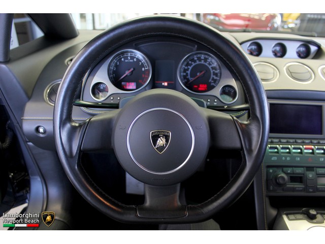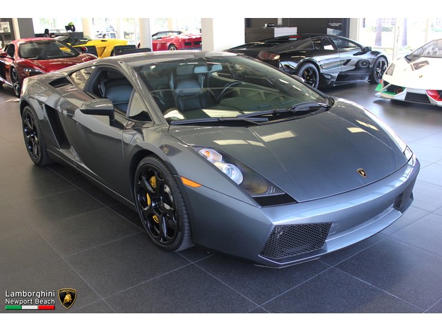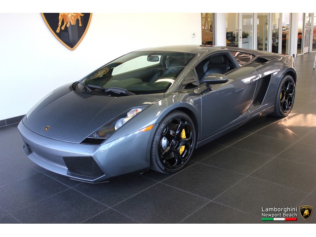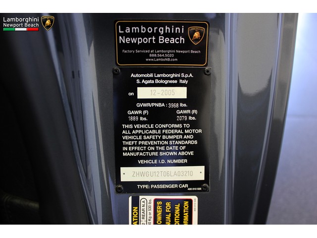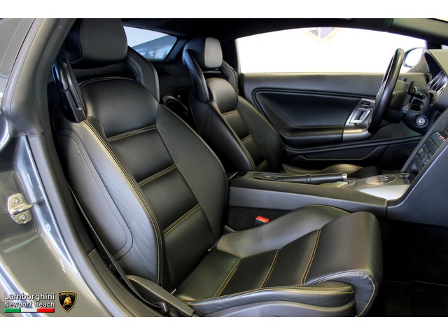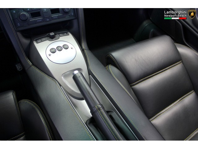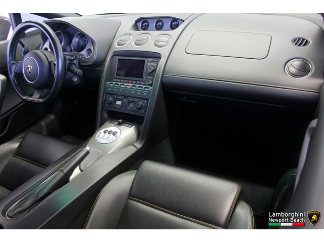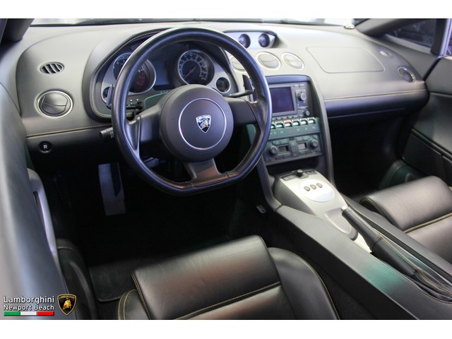 Lamborghini Newport Beach is pleased to offer tho very clean 2006 Gallardo Coupe painted in "Grigio Proteus". Powered by a 5.0L V10 and mated to a Paddle-Shifted E-Gear gearbox, this Gallardo is fast off the line thanks to its All-Wheel-Drive system. This Gallardo Coupe is optioned as followed: "Grigio Proteus" exterior paint, full Black Nero Perseus Leather interior, Gloss Black Cassiopeia wheels, Yellow brake calipers, Transparent Glass Engine Bonnet, Navigation System, Rear View Camera, Power Mirrors, Power Seats, Paddle-Shifted E-Gear Gearbox, Leather steering wheel, Yellow contrast stitching, plus much more. We invite you to call us if you have any questions regarding this very clean 2006 Gallardo Coupe. We look forward to speaking with you soon.