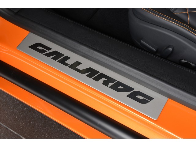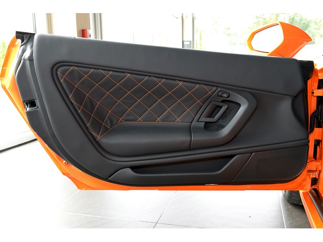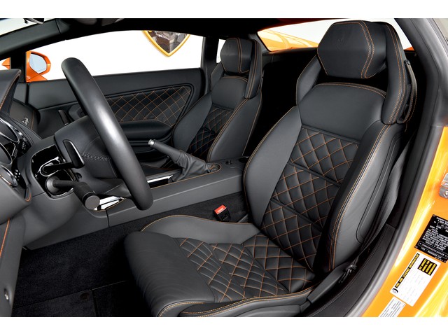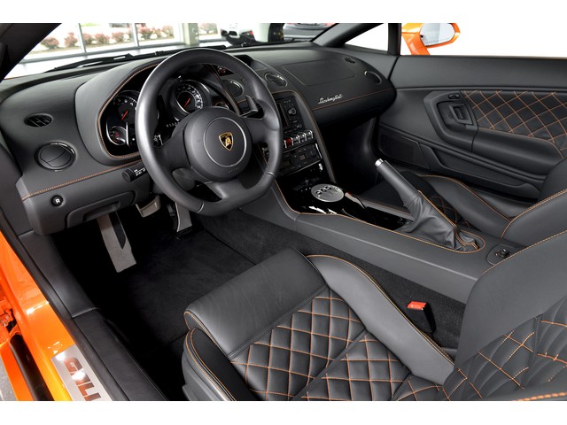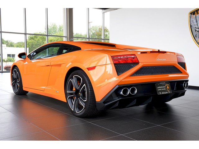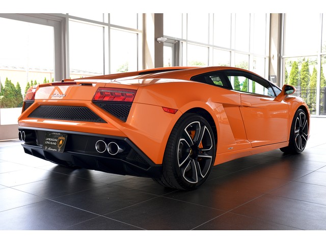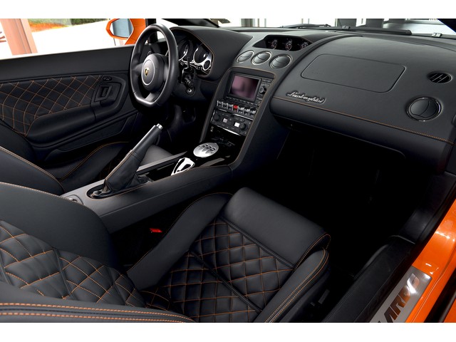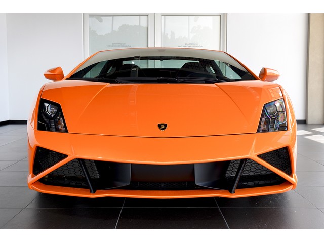 2013 Lamborghini Gallardo LP 560-4 Coupe in Arancio Borealis Pearl Effect (Orange), with Nero Perseus (Black) hide interior. Additional features include Navigation System with Bluetooth, Orange Brake Calipers, Travel Package + Electric & Heated Seats, Interior Q-citura in Orange, HomeLink, Rear View Camera, Branding Package, Interior Nero Piano, Anti-Theft System and 19" Apollo Wheels - Polished. Original MSRP $228,860
