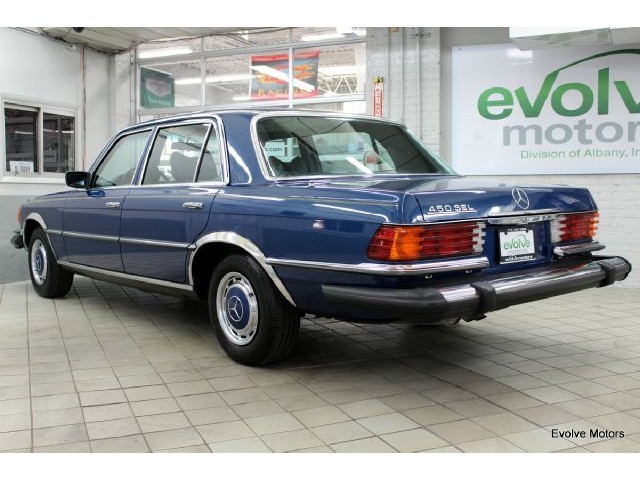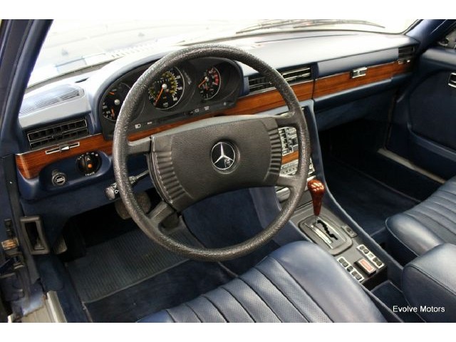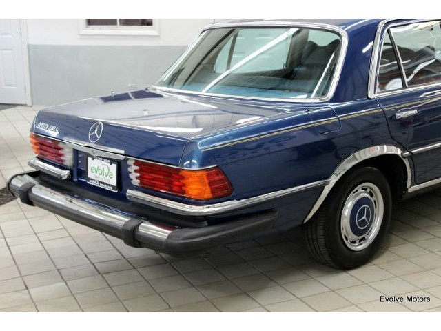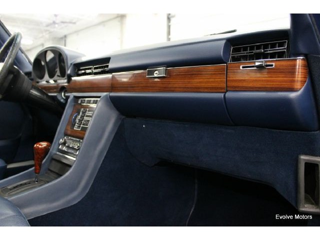The 450 SEL is one of the most popular Mercedes ever built. Striking lines accompanied by the perfect amount of chrome and beautiful colors made these cars a hit. Mix in top of the line luxury and you have a real winner! Our Mercedes was ordered in Blue Metallic and features a blue interior as well. Repainted several years ago, the exterior of this car still shines well, but does have a few tired spots as noted in the pictures. This car also has the euro headlights and the chrome and glass is all in great condition. Inward you'll find the front seats to be in good condition with the drivers bolster showing more wear. The rear seats look to be barely used and feature new padding and springs, but retain the original seat covers. This car features the original Becker AM/FM Radio, power windows, power locks, power sunroof, and air conditioning.